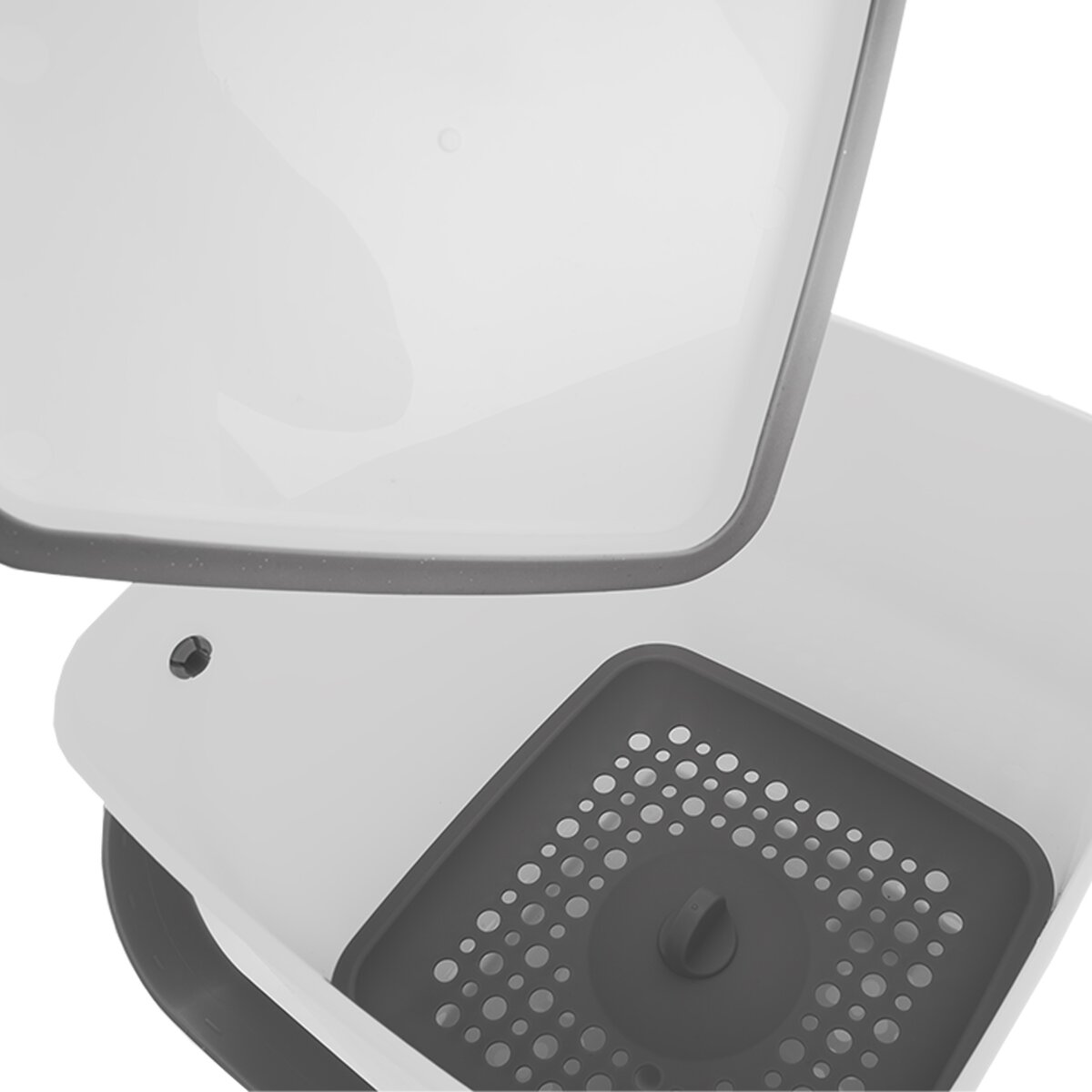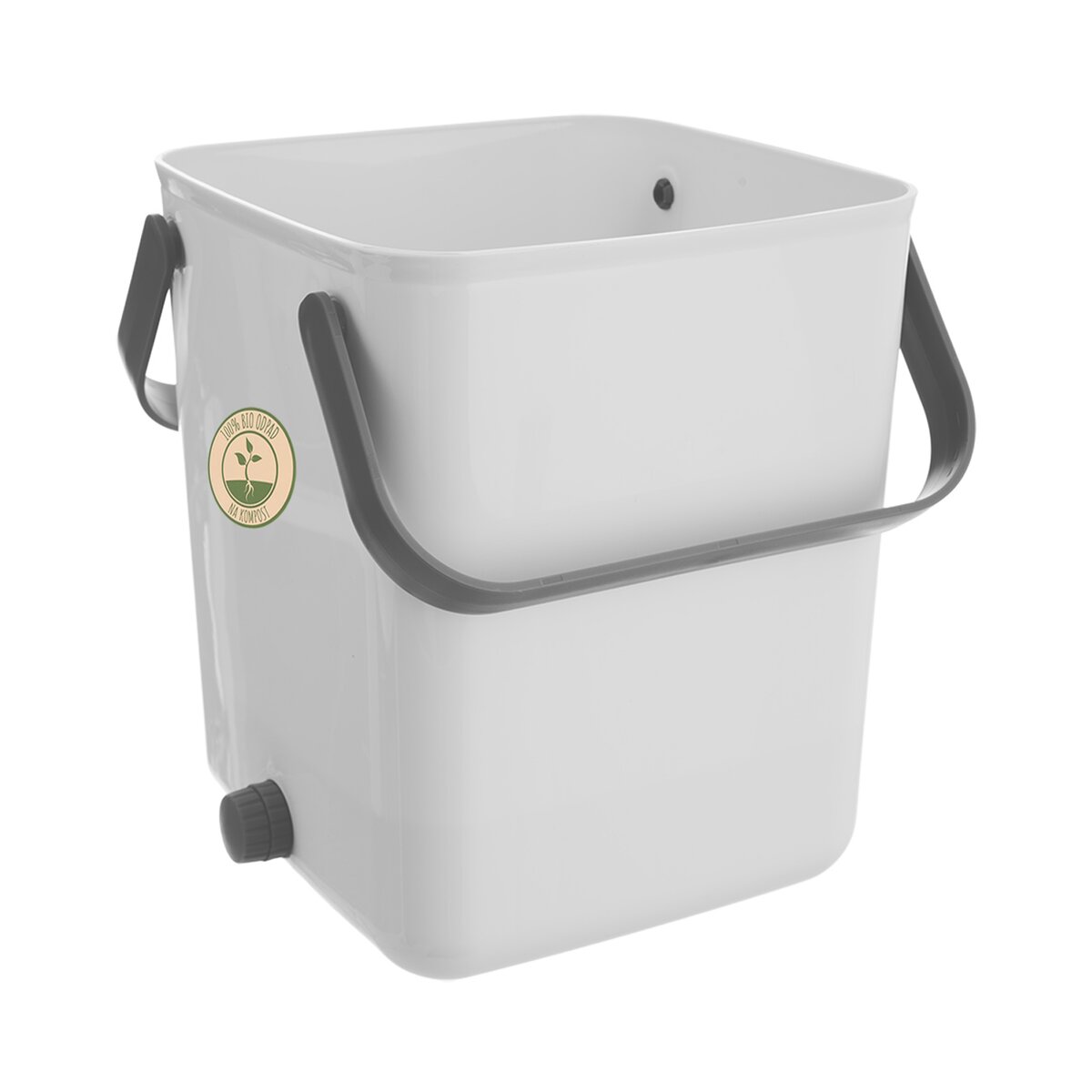 Díky praktickým sklopným uchům snadno přenesete. Součástí výrobku je lopatka, kelímek na tekutinu a sítko. Po vyprázdnění kompostér opláchněte vodou (bez saponátů a mýdel) a nechte důkladně vyschnout. Po vysušení je opět připraven k použití. Díky těsnícímu víku můžete mít kompostér doma například v kuchyni pod dřezem. Do kompostéru nevkládejte: mléko, džus, olej, ocet, vodu, velké kosti, popel, papír, zvířecí exkrementy.