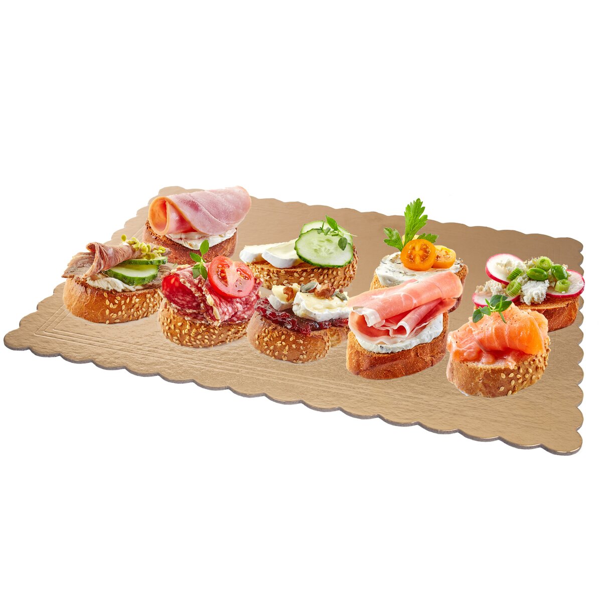 Oboustranné lepenková podložka ve zlaté barvě je vhodná především ke zdobení a přenášení narozeninových dortů, různých zákusků, cukroví, chlebíčků, kanapek a dalších pokrmů. Její předností je, že povrchová úprava, tedy potažení fólii, je nepromastitelná.