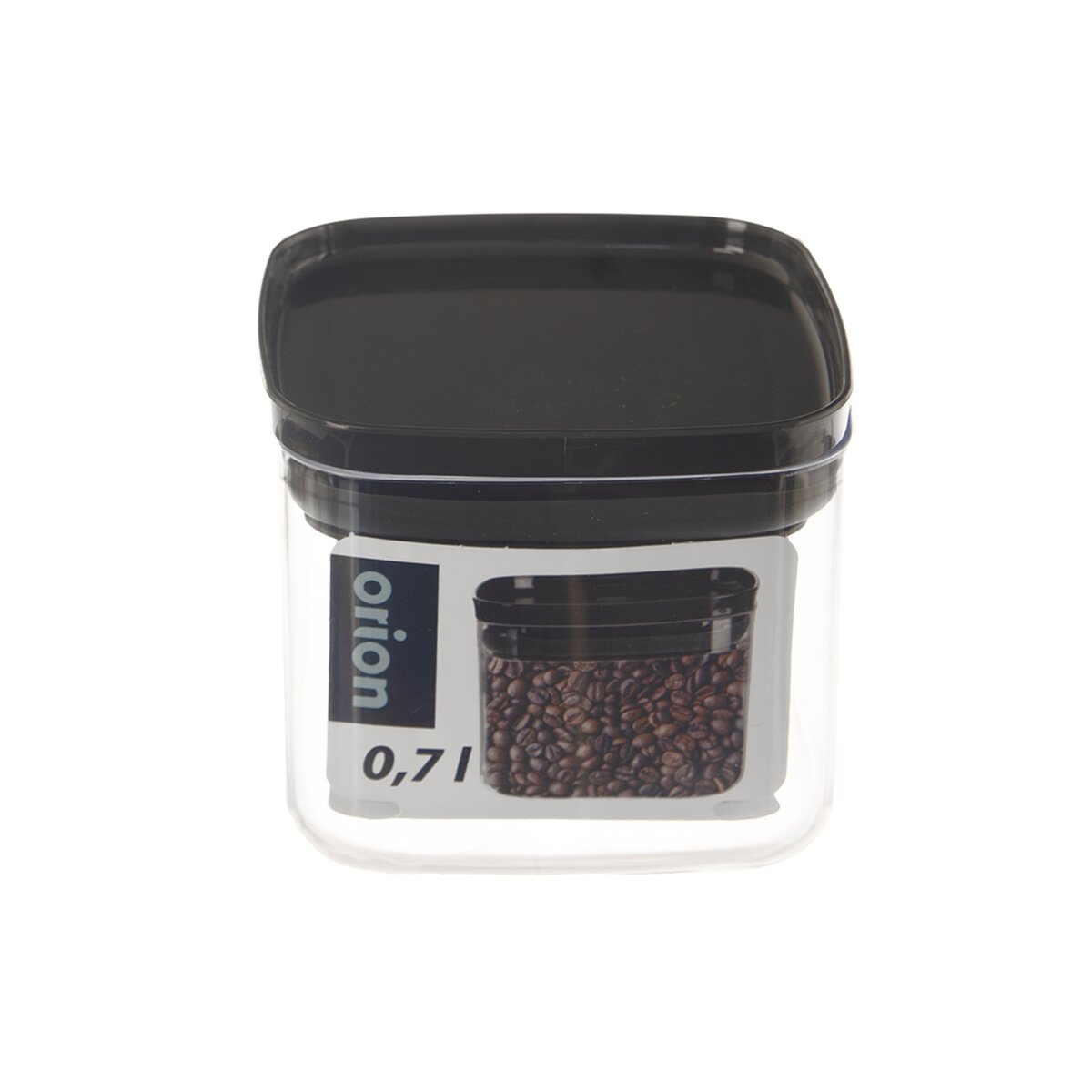 Kód produktu 127174Transparentní hranatá dóza o objemu 0,7 l, vhodná k uskladnění potravin, např. rýže, těstovin, zavářky do polévky a cereálií. Je pevně uzavřena víčkem se silikonovým těsněním.