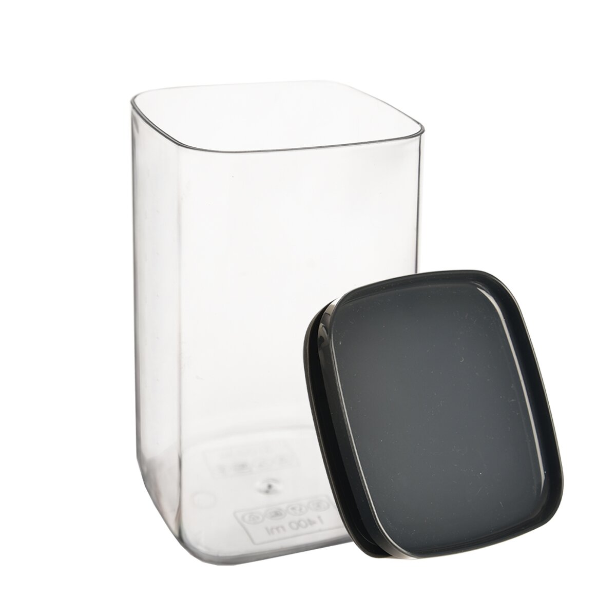 Kód produktu 127175Transparentní hranatá dóza o objemu 1,4 l, vhodná k uskladnění potravin, např. rýže, těstovin, zavářky do polévky a cereálií. Je pevně uzavřena víčkem se silikonovým těsněním.
