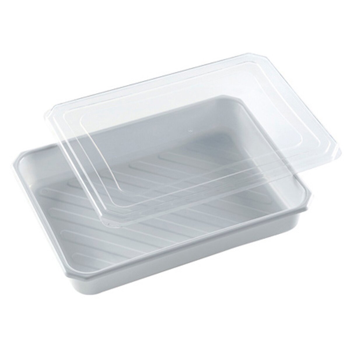 Plastová dóza, která se hodí k uložení a přenášení potravin. Její objem je 4 l a má praktické transparentní víko, které umožní vidět obsah nádoby. Hodí se např. i k obalování řízků, je mělká a široká.