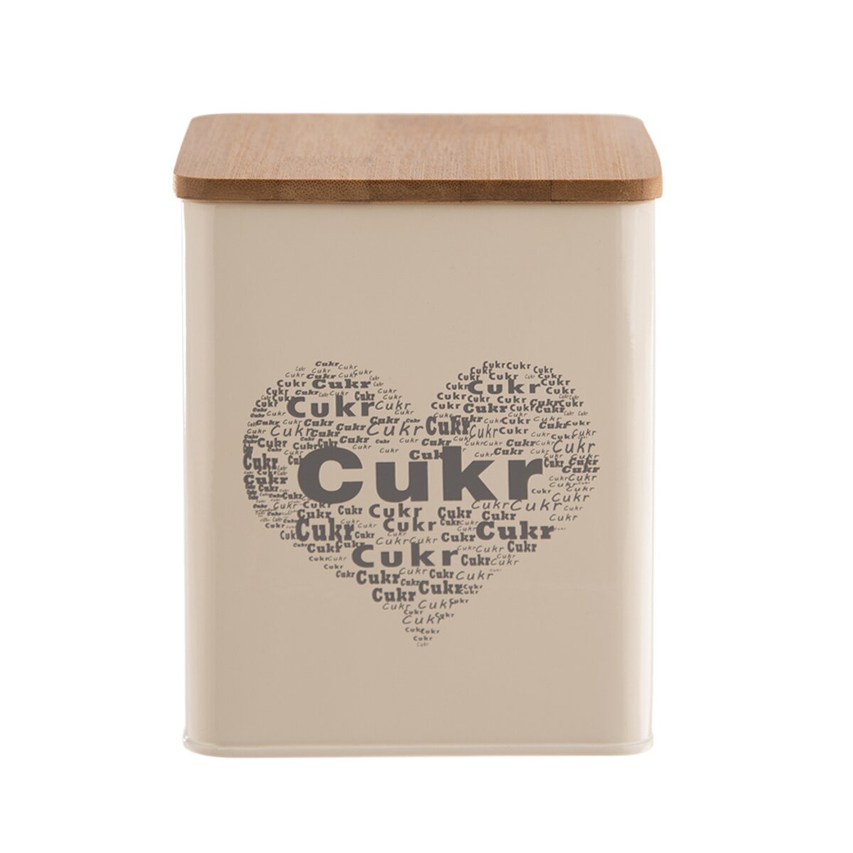 Tato plechová dóza ve smetanové barvě nese nápis CUKR. Hodí se proto ke skladování moučkového, třtinového nebo kostkového cukru a dalších druhů. Zároveň jej můžete využít i na cukrovinky, které vám pokaždé, když do nádoby sáhnete, osladí život. Součástí je také dřevěné víčko se silikonovým těsněním, které zaručuje pevné uzavření nádoby.