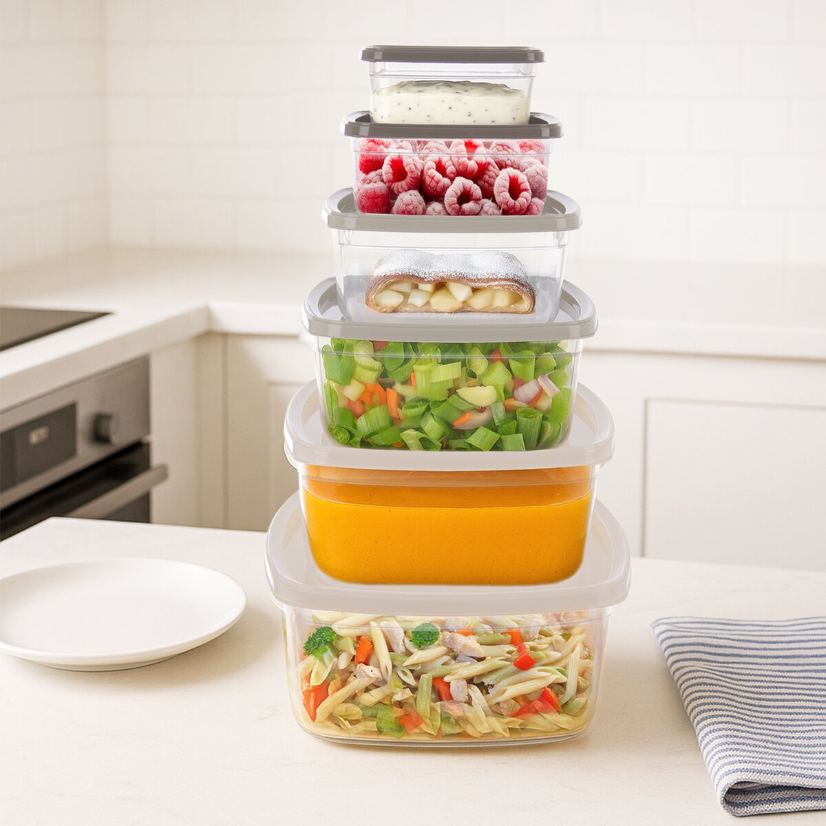 Tato sada obsahuje šest čtvercových nádob o rozměru: