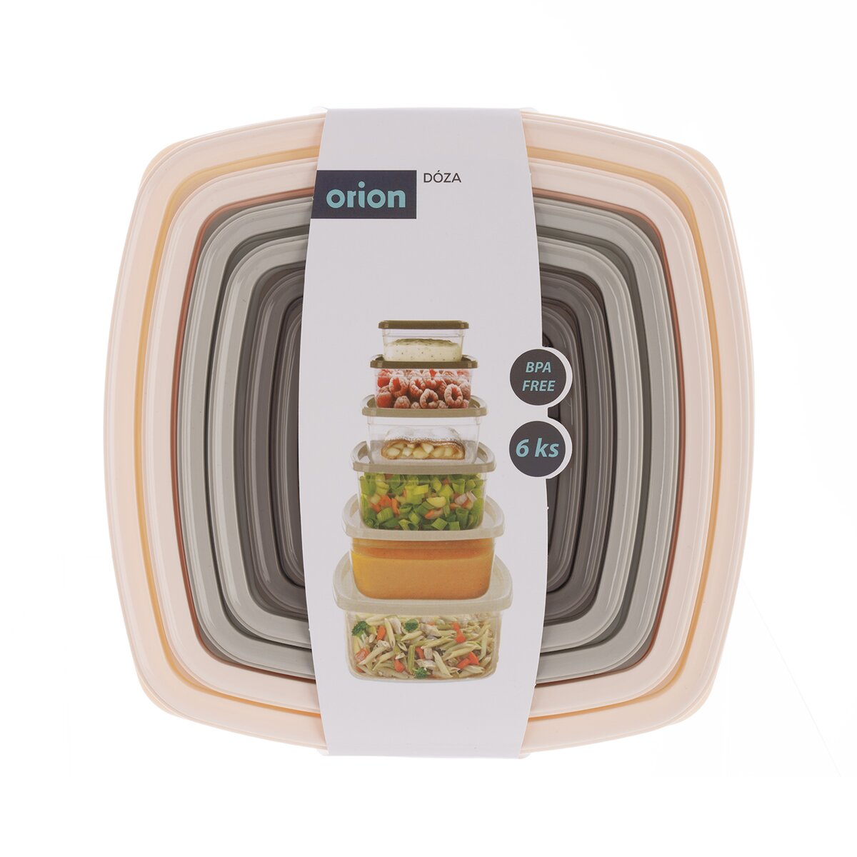 Kód produktu 154508Sada 6 transparentních čtvercových dóz s víčky se hodí k uložení surovin pro vaření a pečení, k převážení hotových jídel do práce, na výlety, k uložený drobností v domácnosti. Mají objem 0,275 l, 0,5 l, 0,85 l, 1,35 l, 2,1 l a 3,2 l.