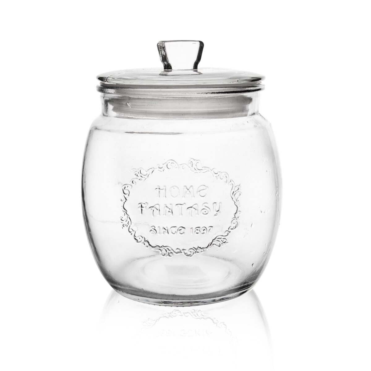 Kód produktu 126494Skleněná dóza FANTASY o objemu 1 l s jemným reliéfem a praktickým víčkem.
