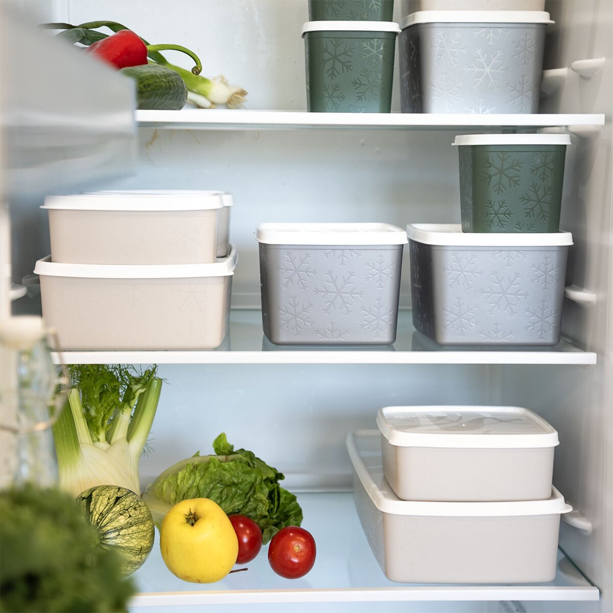 Kód produktu 127918Plastová dóza FROST o objemu 2 l s bílým víčkem má béžový odstín s dekorem vloček. Vhodná k ukládání potravin v mrazničce a chladničce.