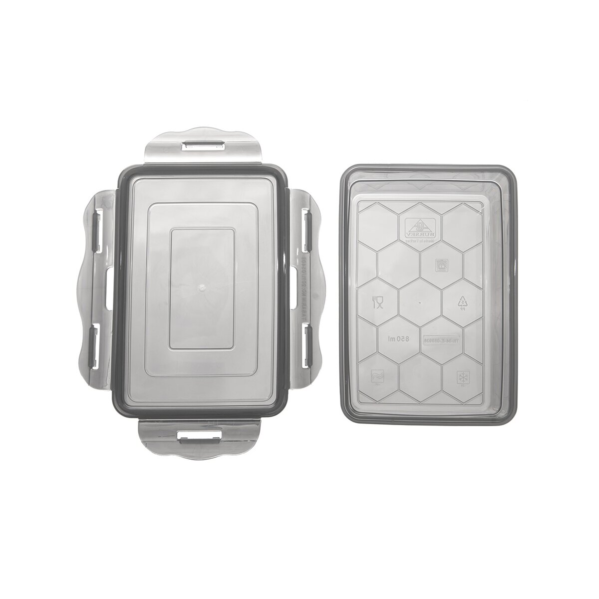 Kód produktu 127164Obdélníková plastová dóza GREY velikosti 15x10,5x6 cm, se silikonovým těsněním a uzavírání na 4 klipy ve víčku.