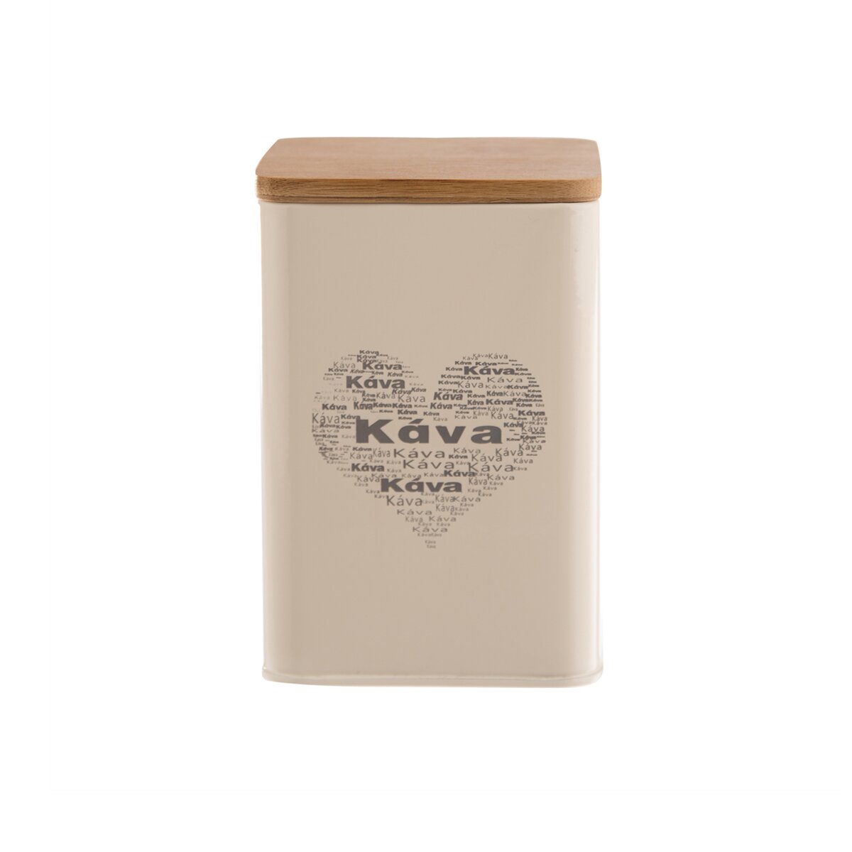 Tato plechová dóza ve smetanové barvě nese nápis KÁVA. A ať už preferujete zrnkovou, mletou nebo rozpustnou kávu, teď už bude mít v kuchyni své pevně dané místo. Součástí je také dřevěné víčko se silikonovým těsněním, které zaručuje pevné uzavření nádoby.