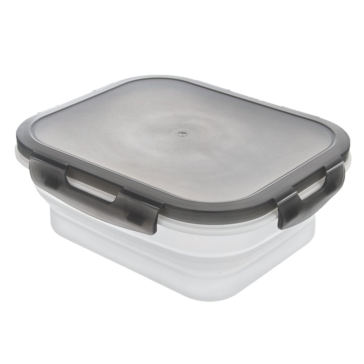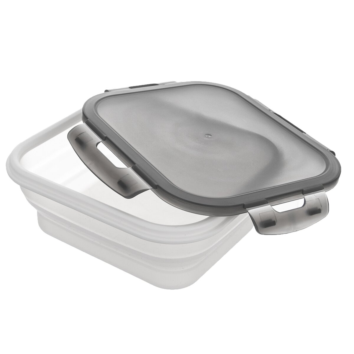 Kód produktu 127159Skládací transparentní hranatá dóza objemu 1 l s těsněním a víčkem se 4 klipy, vhodná na kempování, do karavanu i na uložení pokrmů do práce nebo na svačinu do školy. Umožňuje ohřev v mikrovlnné troubě a mytí v myčce.