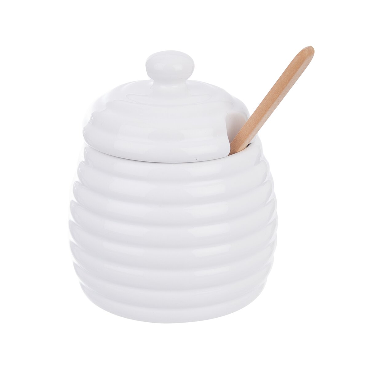 Kód produktu 142287Porcelánová dóza na med s víčkem a dřevěnou lžičkou na nabírání medu. Lze ji umývat v myčce nádobí.