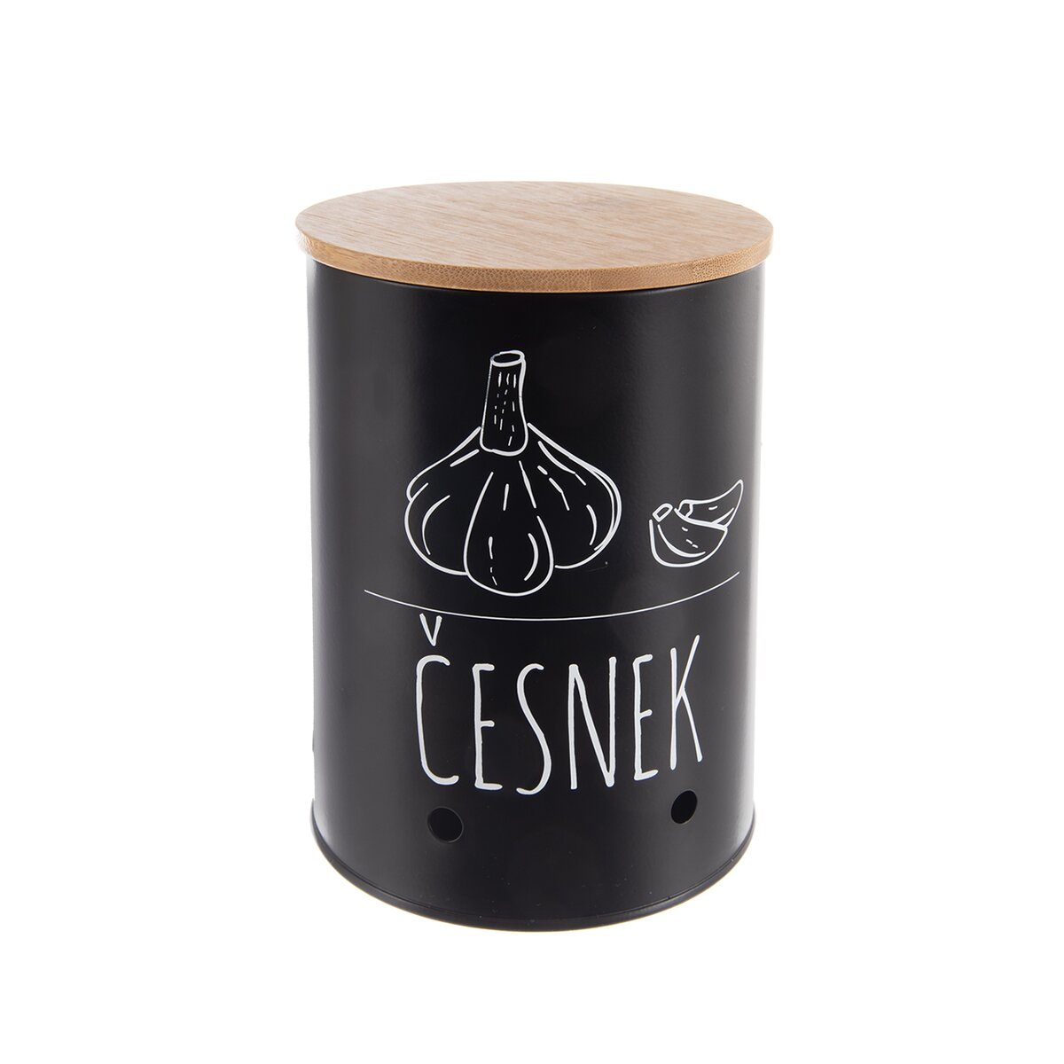 Potisk s nápisem napoví, jaký obsah dóza ukrývá. Tato stylová dóza bude skvělým místem k uložení palic česneku. Součástí je i bambusové víčko. Ventilační otvory zajišťují cirkulaci vzduchu, zamezují hromadění vlhkosti a tepla a tím zabraňují klíčení, vzniku plísní a zajišťují delší trvanlivost. Navíc je i designovým kouskem.
