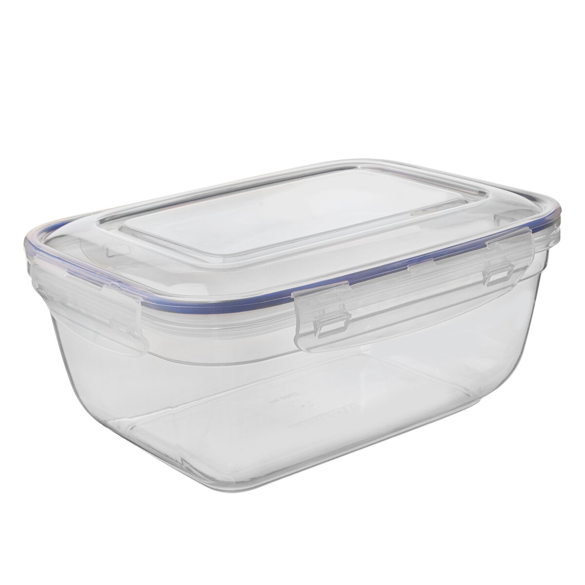 Kód produktu 127152Transparentní stohovatelná hranatá dóza objemu 2,3 l, se silikonovým těsněním ve víčku a s klipy pro pevné uzavření.