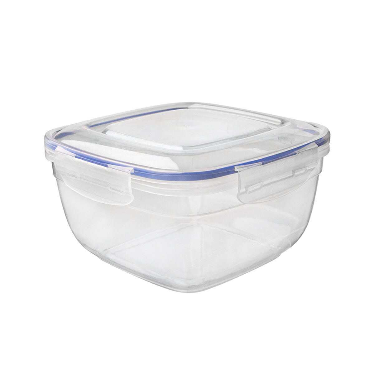 Kód produktu 127150Transparentní stohovatelná hranatá dóza objemu 2,4 l, se silikonovým těsněním ve víčku a s klipy pro pevné uzavření.