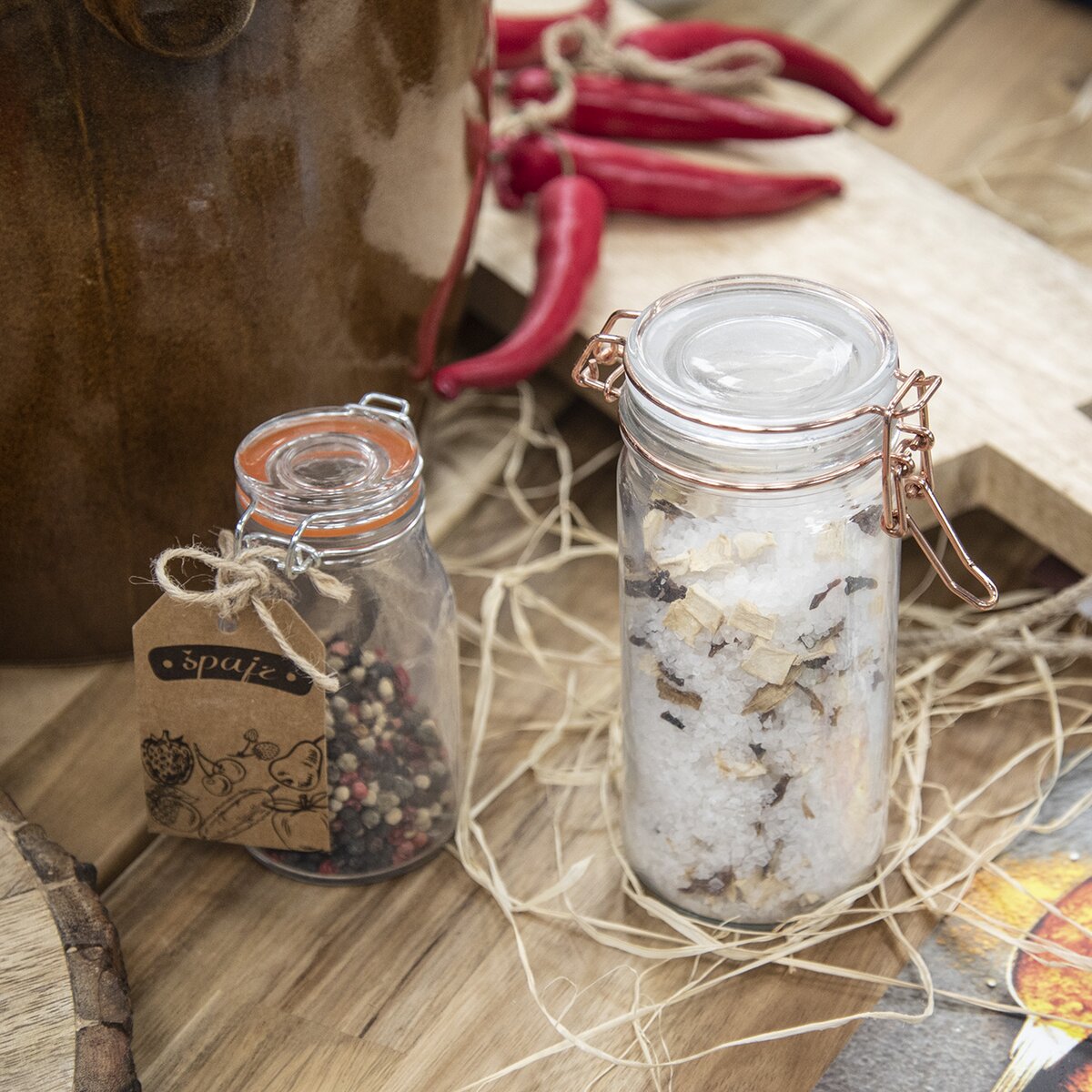 Pevné utěsnění jejího obsahu zajišťuje silikonové těsnění a patentní drátěný uzávěr. Může být i krásným hand made dárkem, naplněná ve vrstvách oříšky a semínky. Pokud do ní vložíte třeba svíčku nebo kamínky a mušle, bude z ní krásná dekorace na váš stůl. Lze mýt i v myčce, do myčky je ale vhodné pouze sklo, které častým používáním myčky může lehce šednout, jedná se o běžný jev.