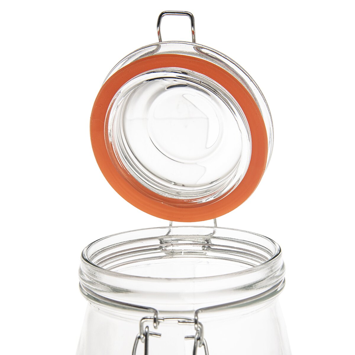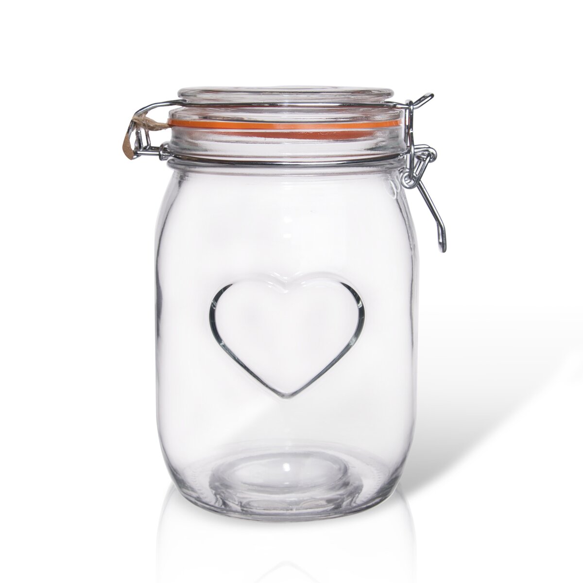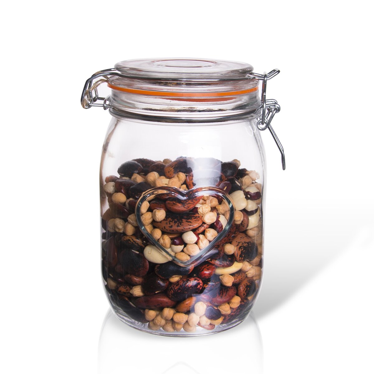 Kód produktu 124674Nakládací skleněná dóza BELA o objemu 1 l s dekorem srdce, kovovým patentem a silikonovým těsněním