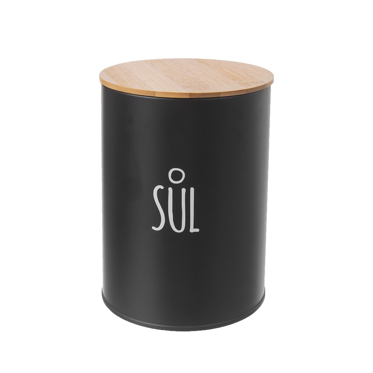 Kód produktu 153679Černá plechová dóza BLACK o objemu 1,3 l, s bambusovým víčkem a silikonovým těsněním. Ideální k uskladnění soli.