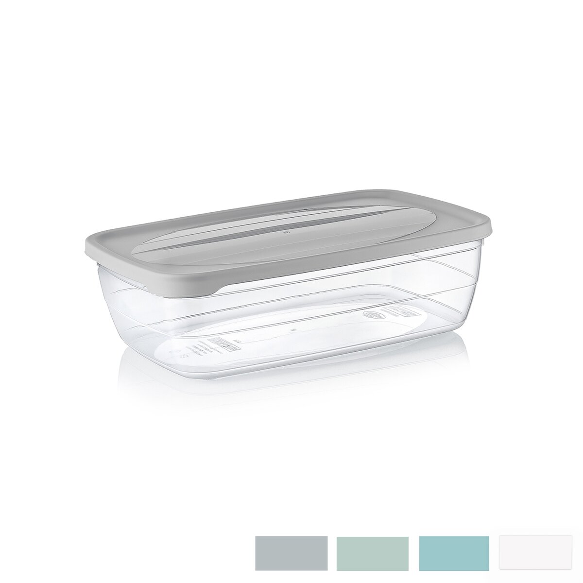 Kód produktu 124652Plastová obdélníková dóza TREND o objemu 1,2 l s barevným víčkem.