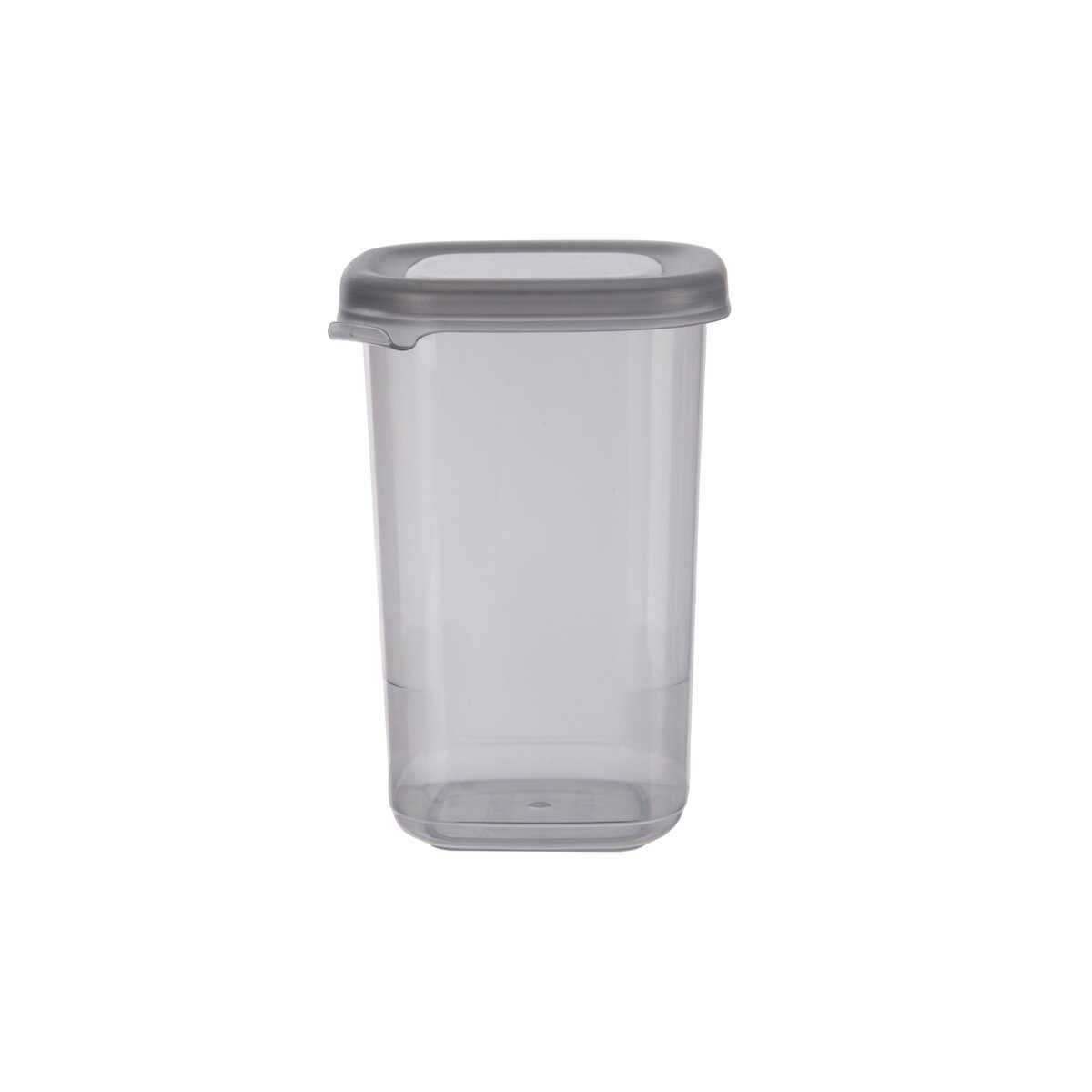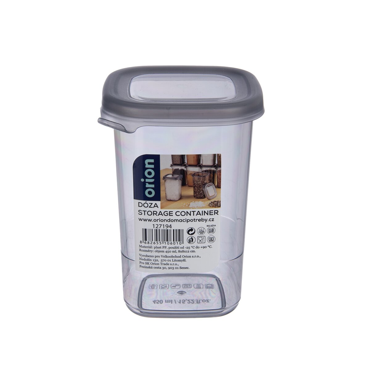 Kód produktu 127194Malá transparentní dóza UROVNEJTO v šedém odstínu má objem 0,45 l a je určena k ukládání sypkých surovin, koření, oříšků, semínek, bylinek apod. Je uzavřena víčkem.