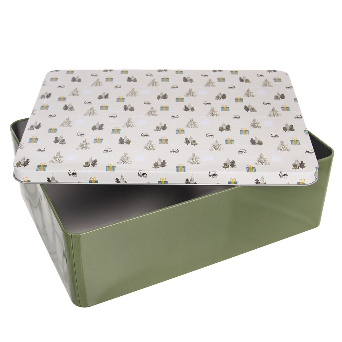 Plechová dóza v příjemné tlumené barvě, doplněná víčkem, je určena k uložení cukroví o vánočních svátcích. Můžete v ní převézt, přenést sladké dobroty na návštěvu, za rodinou, která ocení zase trochu jiné druhy.