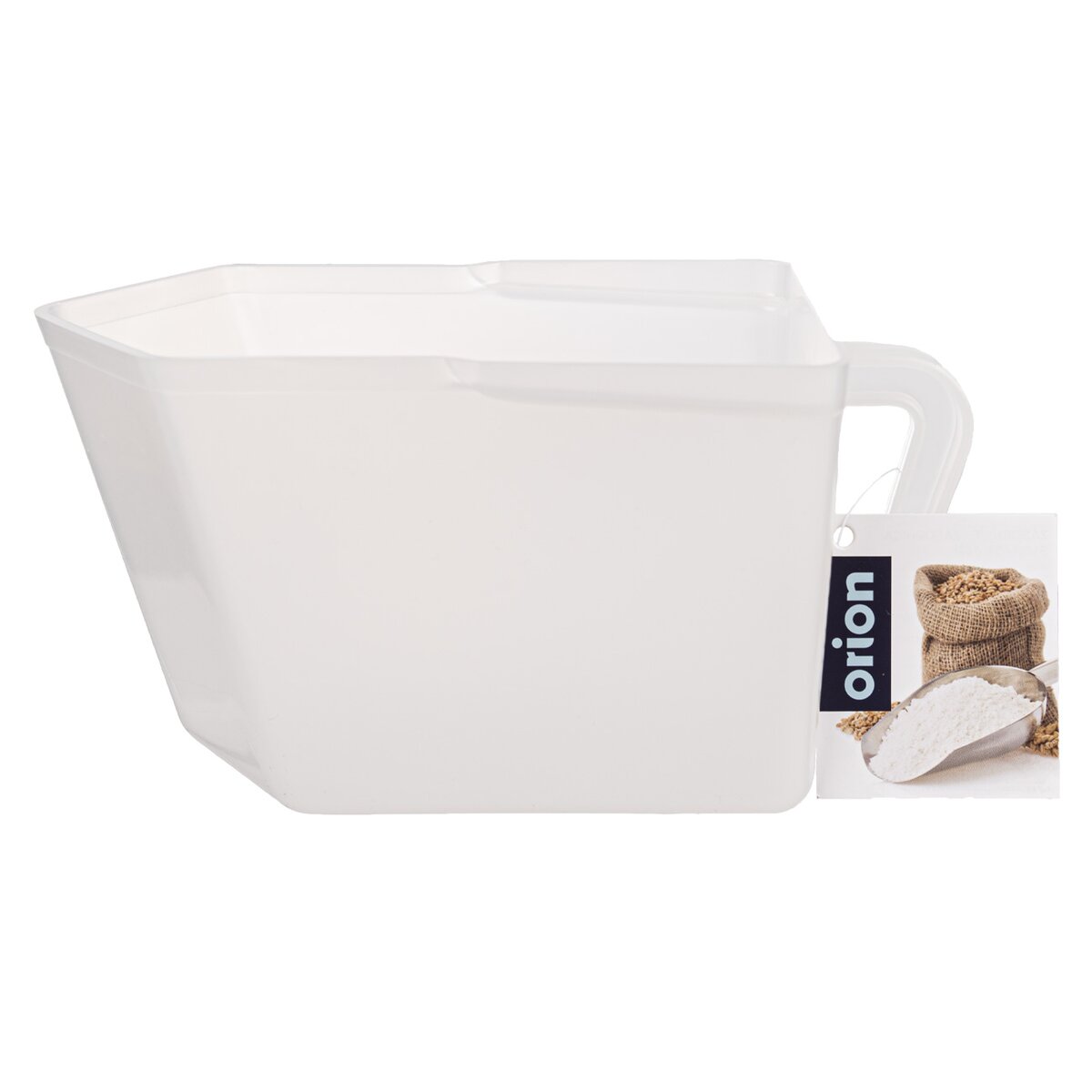 Tato bílá plastová zásobnice poslouží ke tradičnímu způsobu ukládání sypkých potravin. Znaly ji už naše babičky, v kredenci do nich ukládaly nejpoužívanější suroviny k vaření a pečení. Její rozměry jsou 19x10,5x12 cm, s držadlem 23 cm a hodí se k uskladnění mouky, cukru, soli nebo těstovin.
