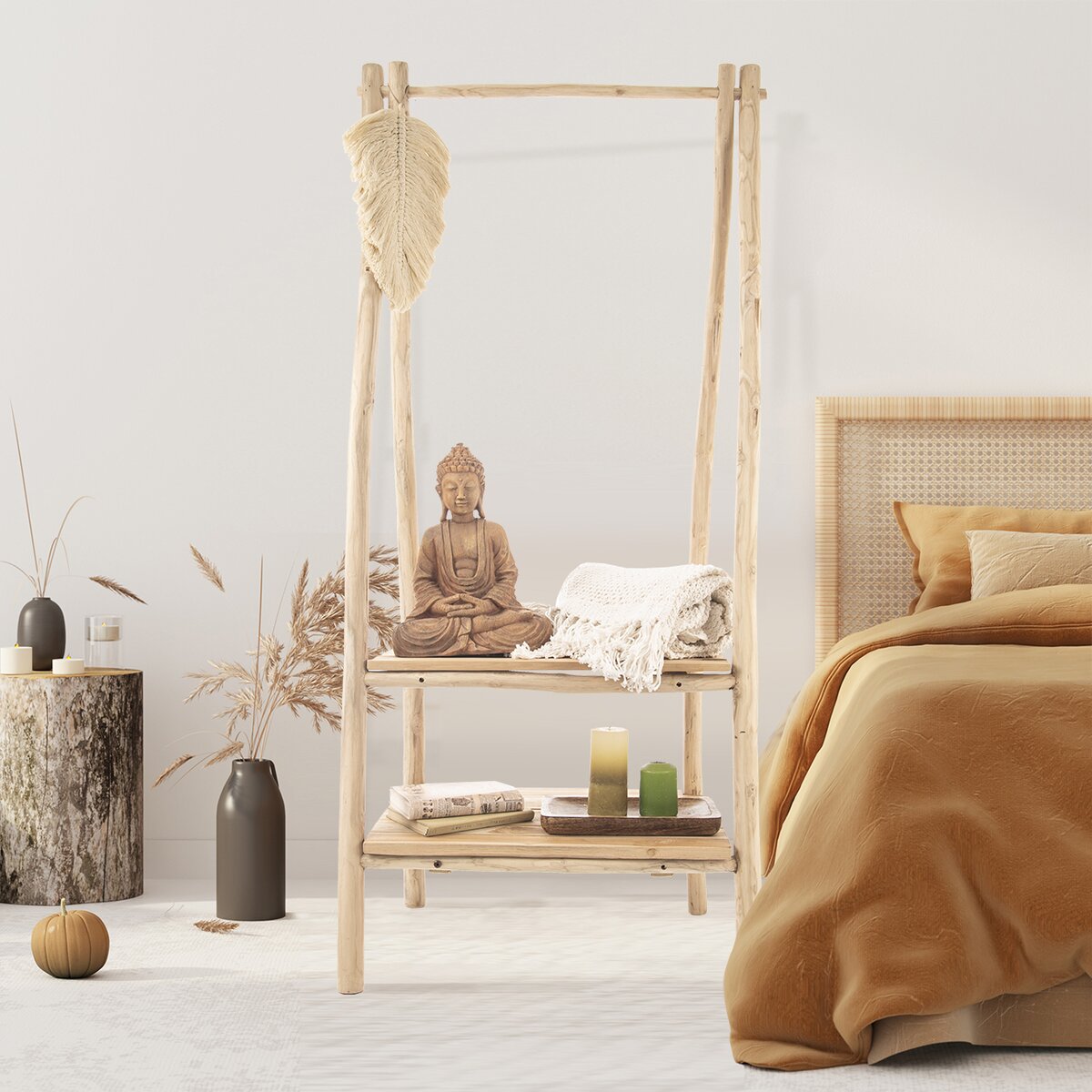 Kód produktu 001310Dřevěný stojan se 2 policemi skvěle využijete jako dekoraci, místo němého sluhy, jako část nábytku. Doma, na terase, balkóně i v koupelně.