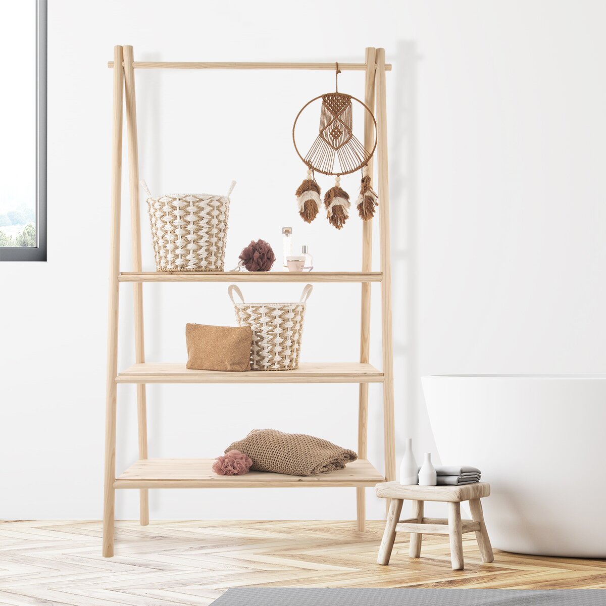 Kód produktu 001311Dřevěný stojan se 3 policemi skvěle využijete jako dekoraci, místo němého sluhy, jako část nábytku. Doma, na terase, balkóně i v koupelně.