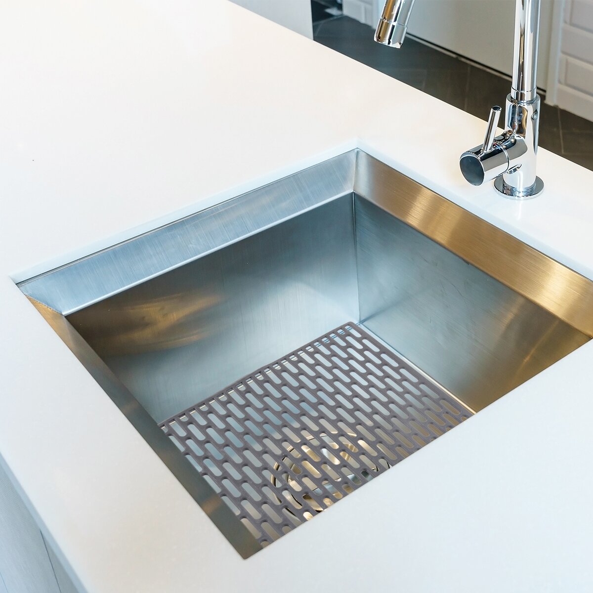 Šedá dřezová vložka ochrání povrch dřezu v kuchyni, koupelně i prádelně před poškrábáním a nádobí, které čeká na ruční mytí, před poškozením. Navíc zmírňuje rozstřikování vody a usnadní její odtok do odpadu.