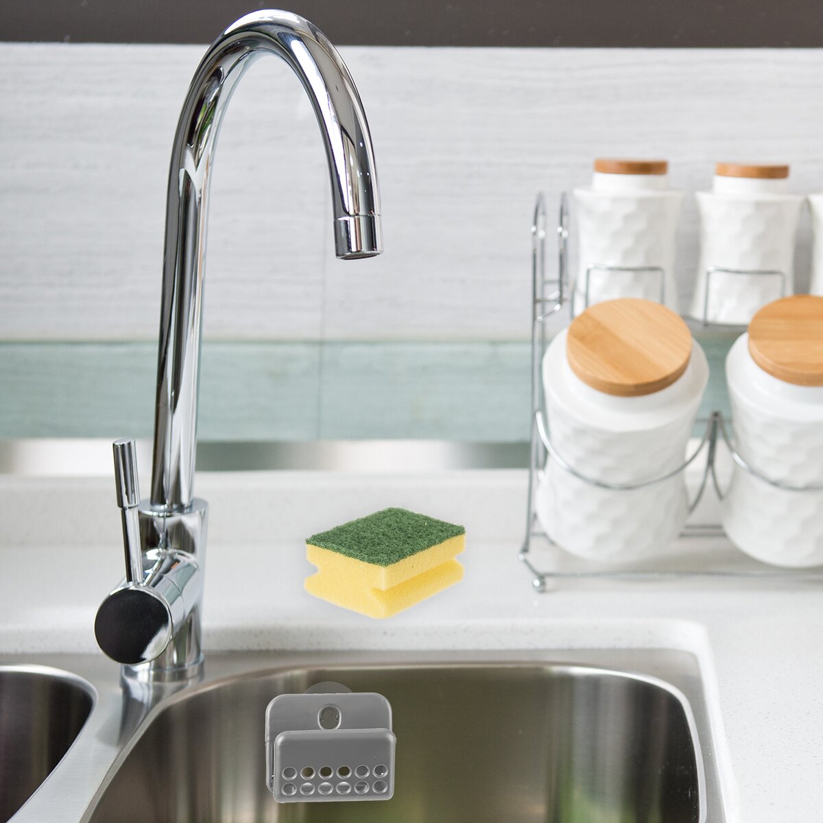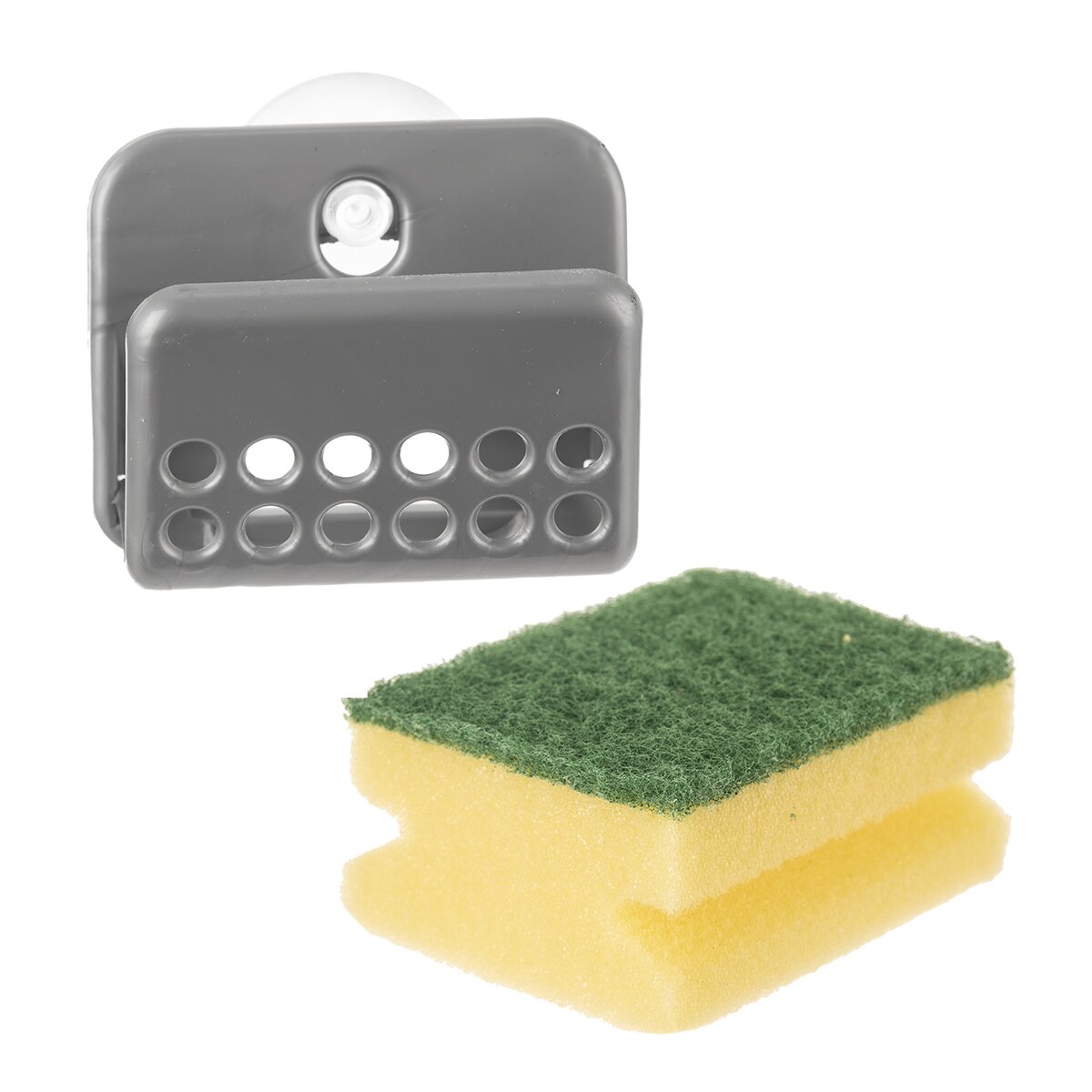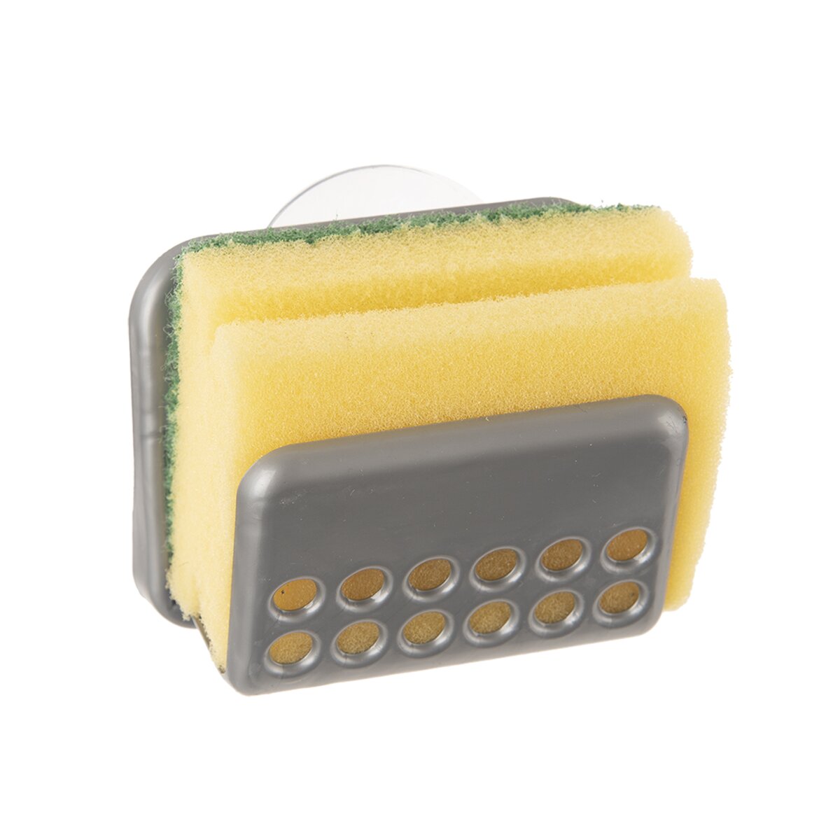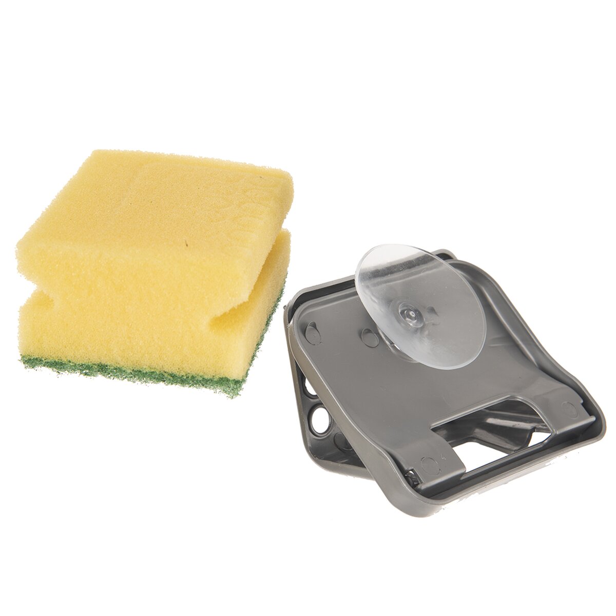 Kód produktu 540119Plastový držák s přísavkou a prostorem na kuchyňskou houbičku, kterou lze připevnit na zadní kuchyňskou desku, kachličky nebo přímo na stěnu dřezu.