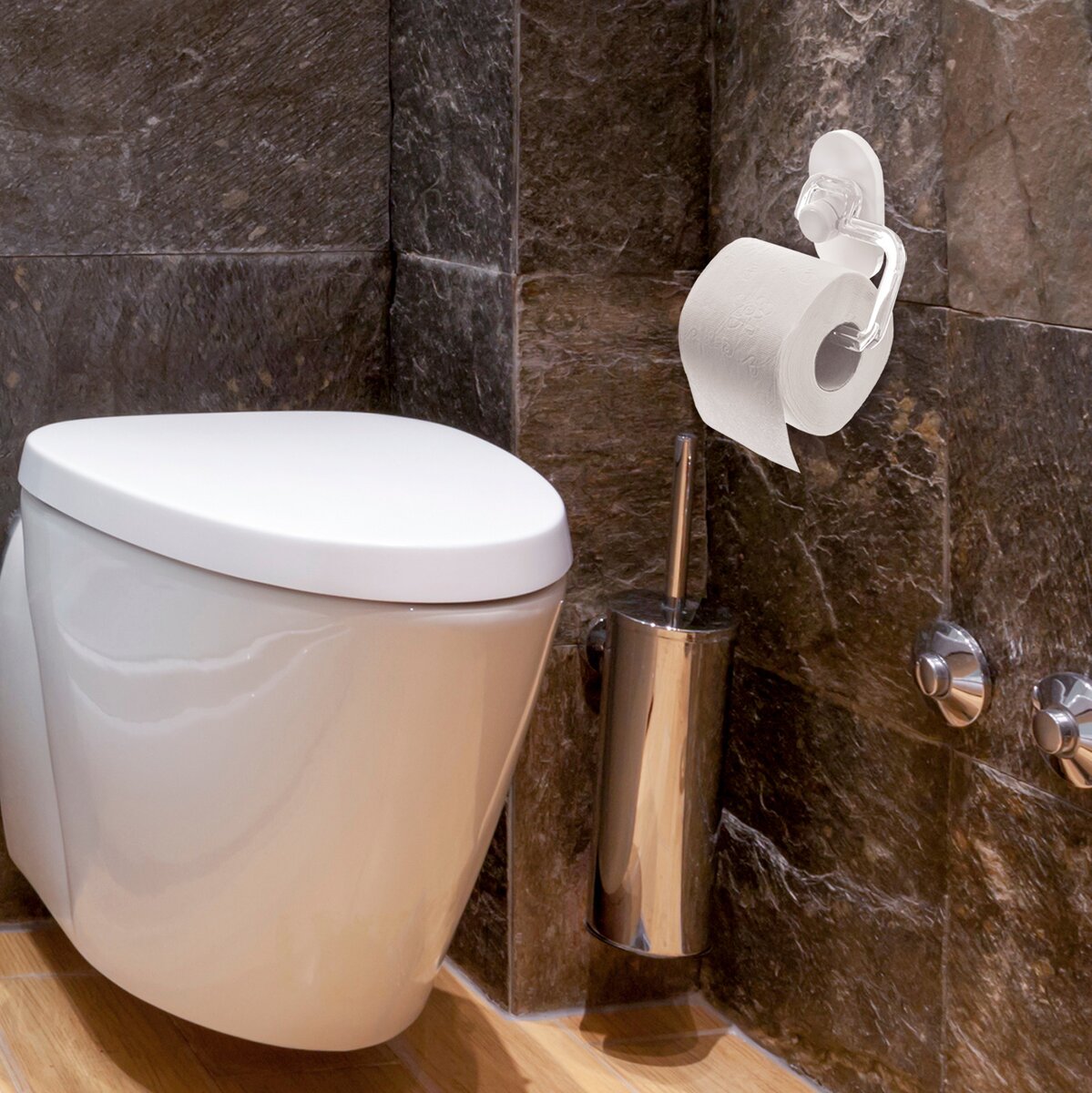 Praktický nástěnný držák toaletního papíru vyrobený z plastu. Připevňuje se na zeď pomocí šroubku a hmoždinky, které jsou součástí balení.