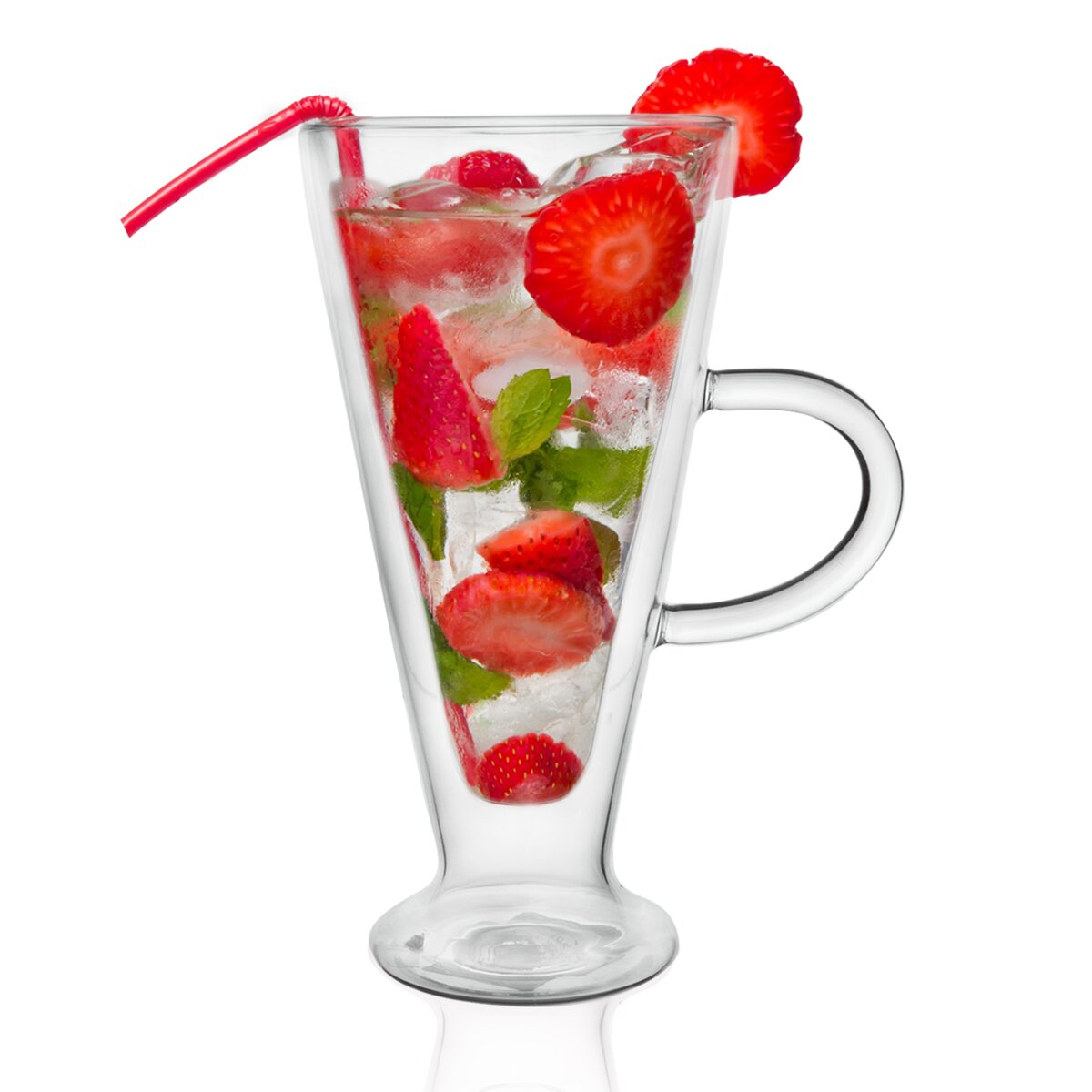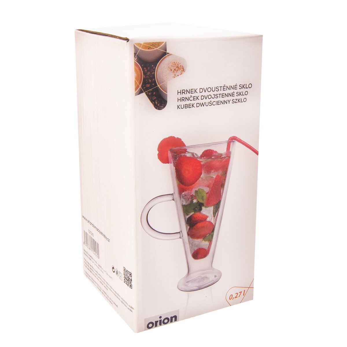 Dvoustěnné termo hrnečky v moderním designu by neměly chybět ani ve vaší domácnosti. Dvojité borosilikátové sklo udrží dlouho teplotu nápoje, takže ranní káva jen tak nevychladne a osvěžující nápoje v letním horku zůstanou déle chladné. Výhodou je také odolnost vůči vysokým a nízkým teplotám, poškrábání, prasklinám i chemikáliím. Jsou odolnější proti tepelné deformaci než běžné sklo. Mytí v myčce nedoporučujeme, mohlo by dojít k proniknutí vody mezi stěny. Materiál: borosilikátové sklo – použití od -10 °C do +210 °C. Rozměry: objem 0,27 l, pr. 8 cm, v. 16 cm.