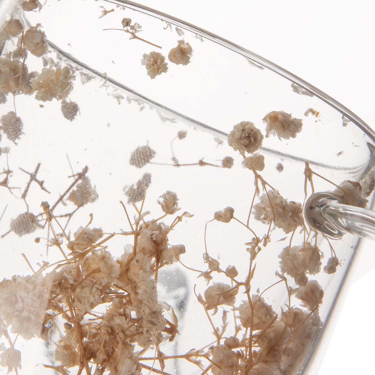 Kód produktu 132210Dvoustěnný hrnek s prostorným uchem má objem 350 ml a je určen k podávání teplých i studených nápojů. Mezi stěnami jsou v prostoru uloženy jemné sušené květy.