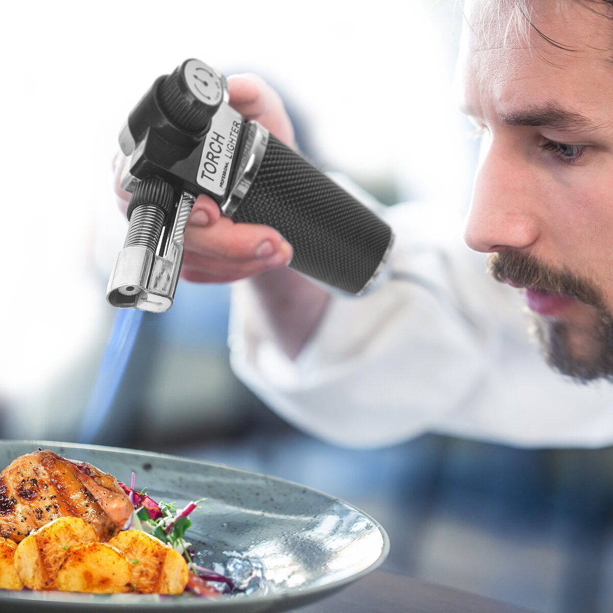 Kromě rychlého flambování ananasu nebo cukrové vrstvy na crème brûlée, pomůže vytvořit i na mase křupavou kůrčičku jako z grilu. Podávaná grilovaná žebra i kuřátko budou mít ideální zbarvení i chuť. Pomocí pistole rovněž snadno odstraníte peří nebo štětiny z drůbeže, vepřových kolen apod.