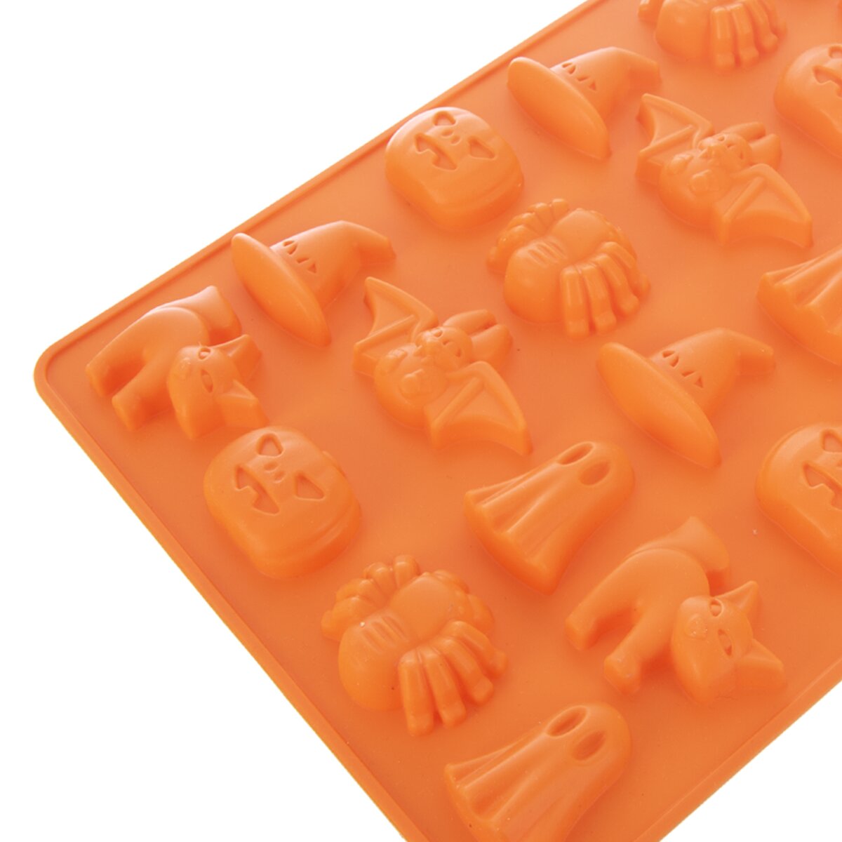 Více informacíV nepřilnavé silikonové formě můžete připravit čokoládové pralinky strašidelných tvarů. Stačí do formy nalít rozpuštěnou čokoládu, přidat vaše oblíbené ingredience, ořechy, sušené ovoce apod. a nechat ztuhnout v ledničce. Jednotlivé pralinky z pružné formy jednoduše vyloupnete. Nebo ji použijte na pečení drobných sušenek ke kávě.
