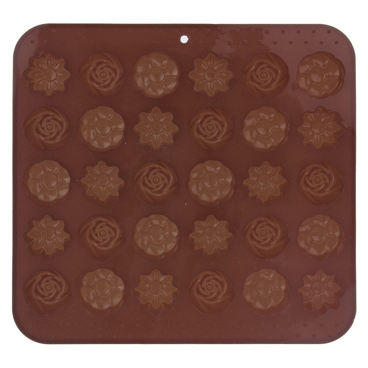 Kód produktu 151736Nepřilnavá hnědá silikonová forma pro rychlé a stejnoměrné pečení 30 ks malých sušenek nebo k výrobě originálních čokoládových pralinek a bonbónů s propracovanými detaily.