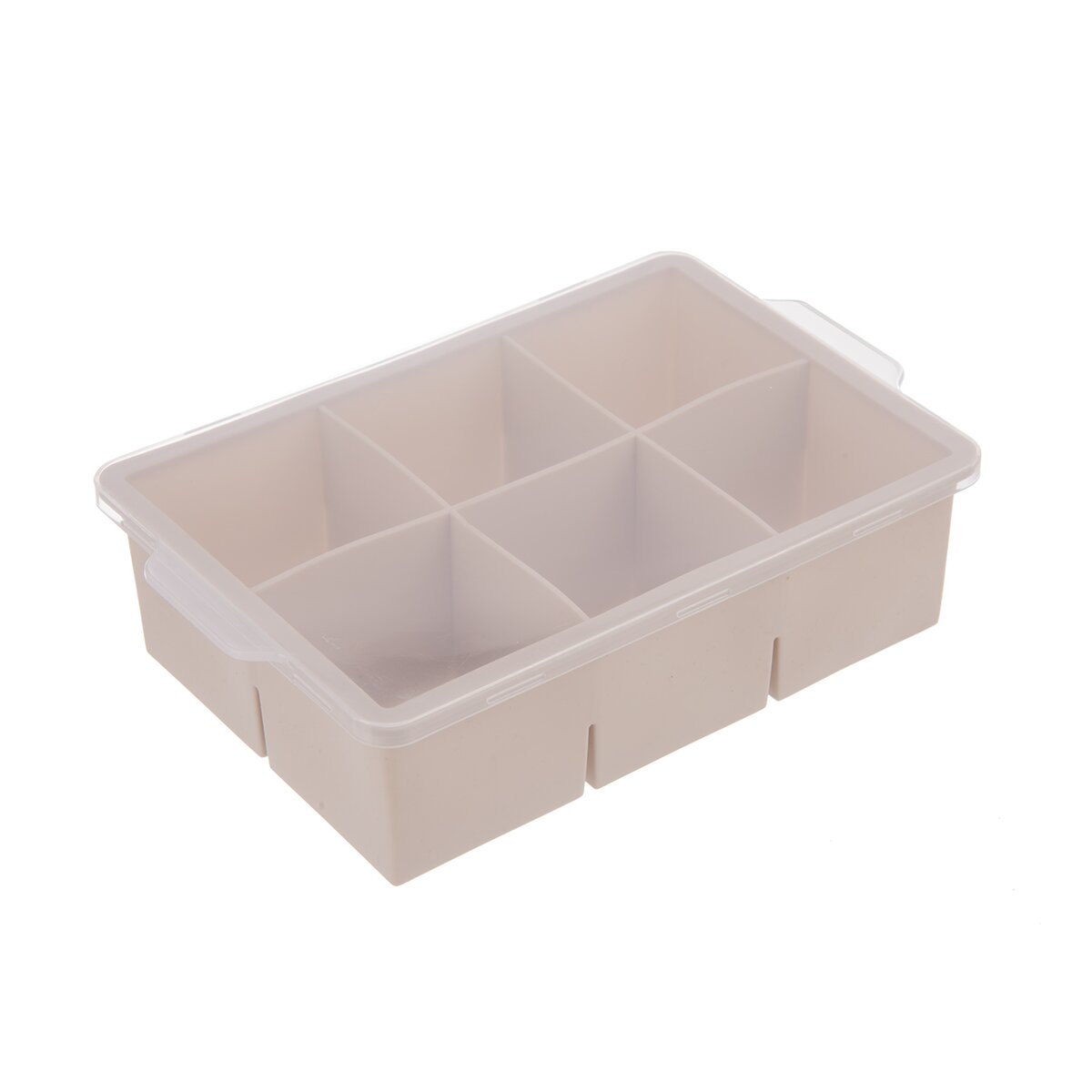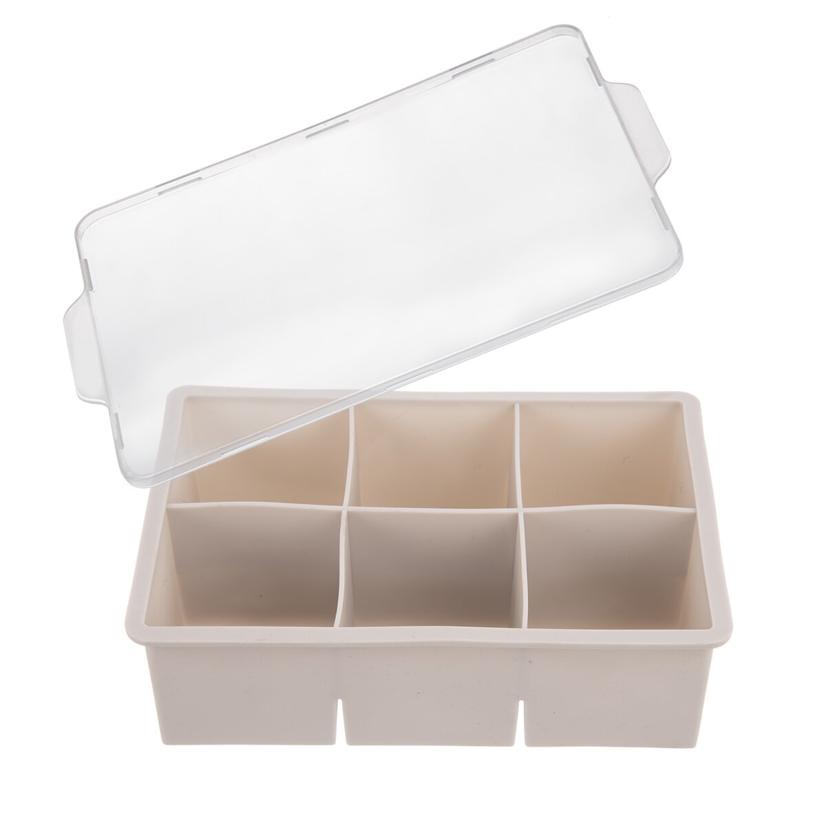 Kód produktu 151134Světlá kávová forma na přípravu velkých ledových kostek je kryta průhledným víčkem, Velké kostky se hodí do džbánů, karaf nebo lahví s kohoutem, případně ji lze použít k mražení příkrmů, pesta i strouhané zeleniny či ovocné dřeně.
