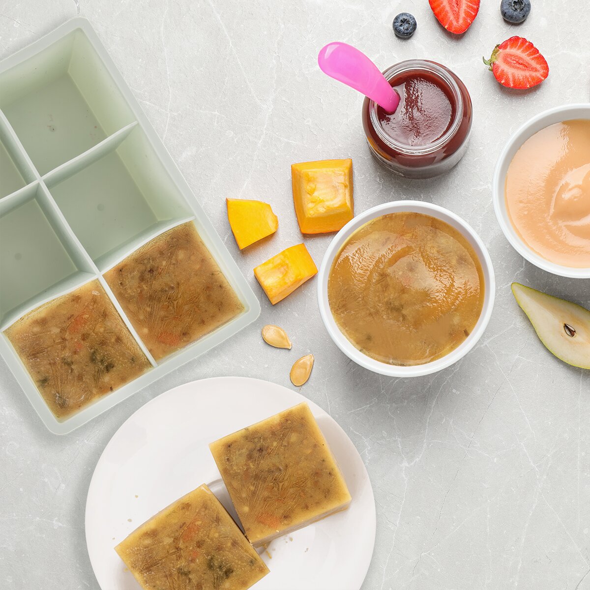 Tuto formu v zelenkavém odstínu lze použít k výrobě čistých kostek ledu, případně je lze doplnit čerstvým ovocem nebo mátou, ale hodí se i k mražení pesta z bylinek, strouhané zeleniny do polévky nebo dětských příkrmů.
