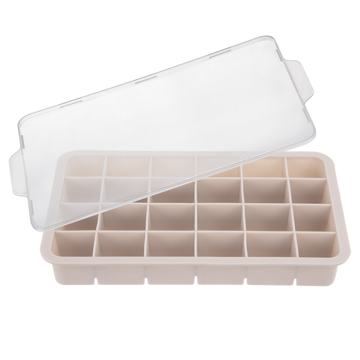 Kód produktu 151136Světlá forma v kávovém odstínu na přípravu 24 ledových kostek je kryta průhledným víčkem, Kostky se hodí do sklenic i lahví na pití, případně ji lze použít k mražení pesta, domácího bujónu nebo bylinkového másla.