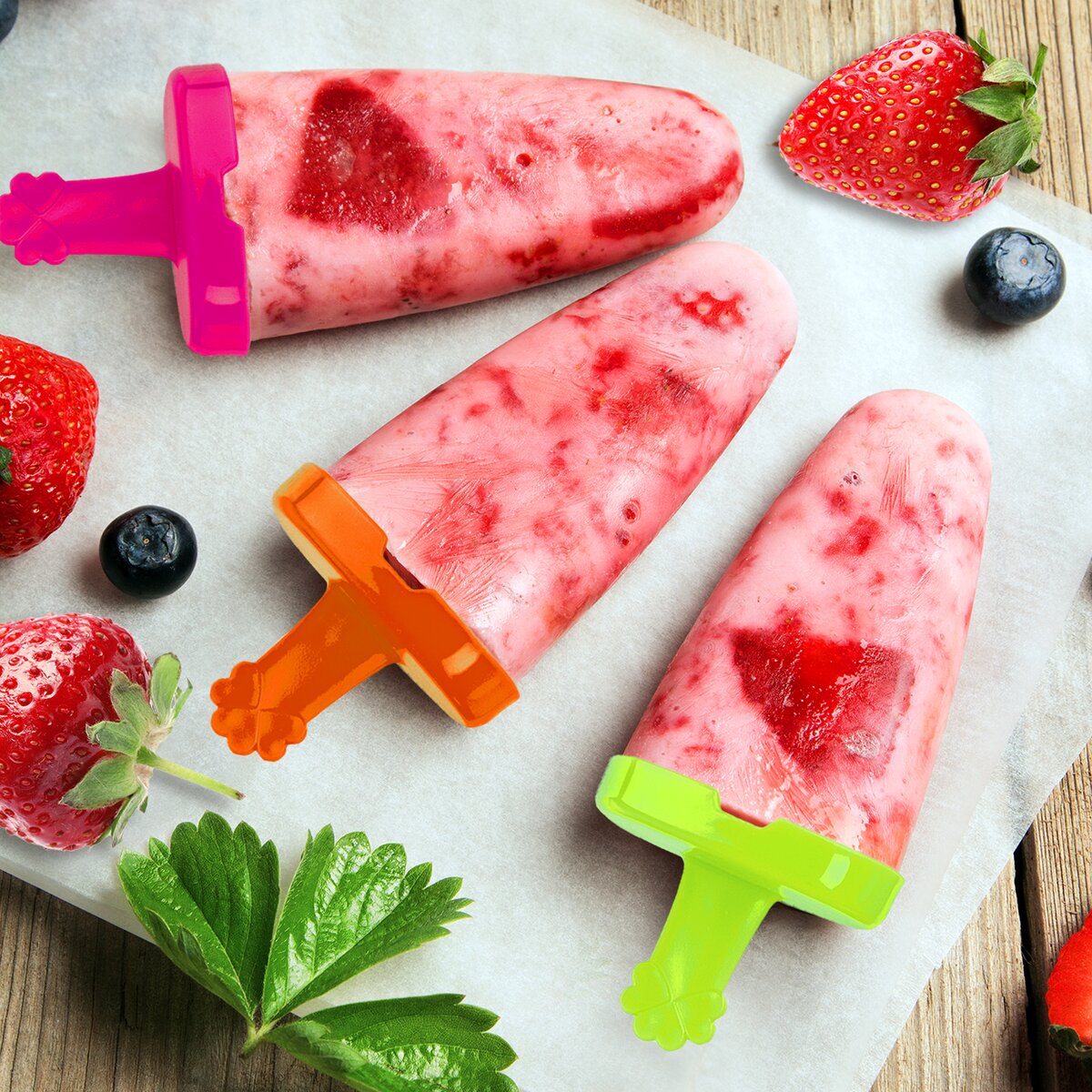 Ať už milujete rozmixované ovoce, zmražené domácí ovocné šťávy, nebo experimentujete s vícebarevnými smetanovými nanuky, stačí směs nalít do formy, vložit víčko s hrotem a nechat zmrazit. Pak jen lehce nahřejete formu v teplé vodě nebo v dlani a zmrzlinu vyjmete.
