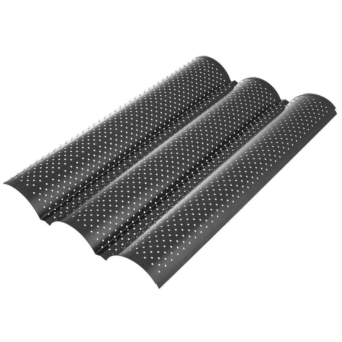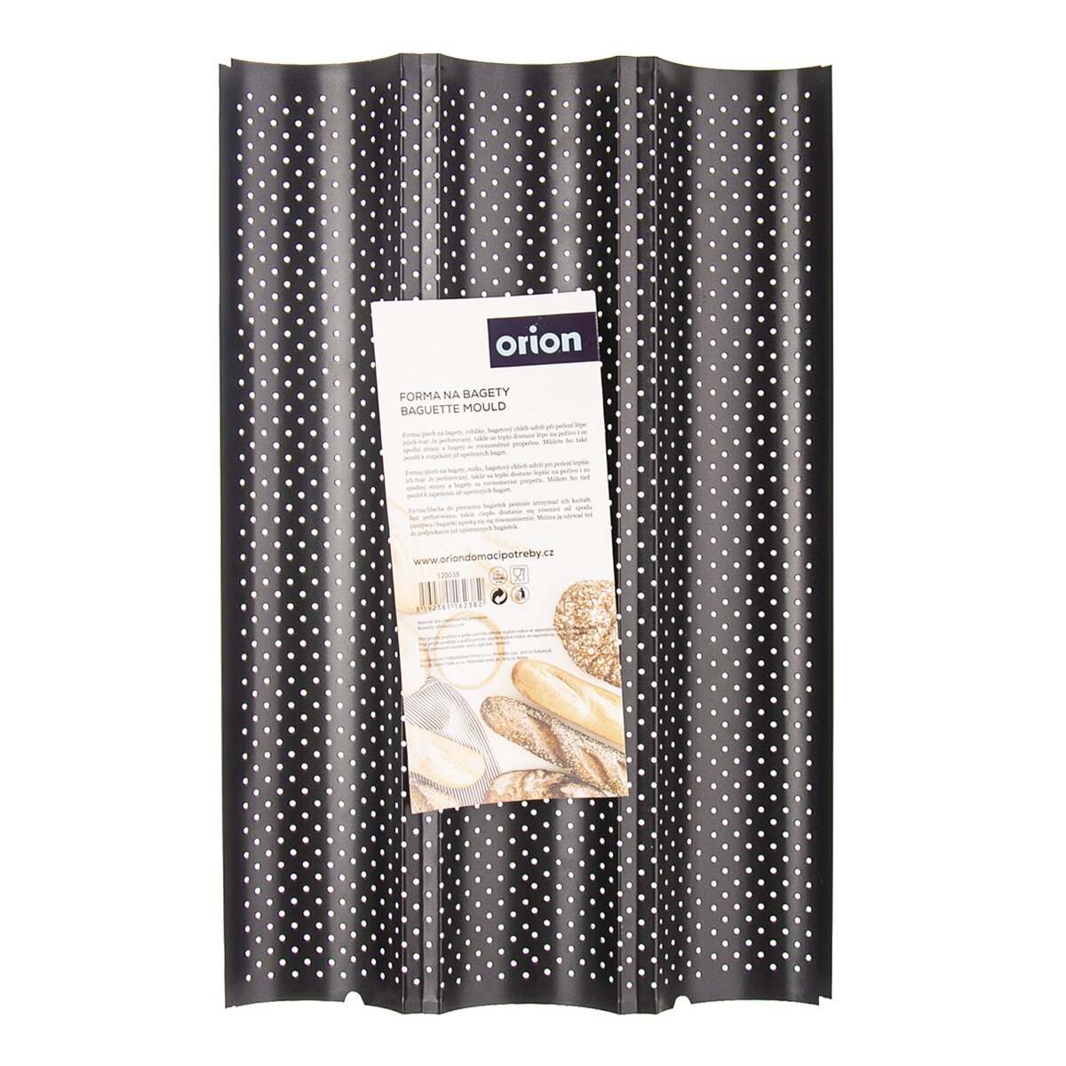 Trojitá forma s perforovaným povrchem je opatřena nepřilnavým povrchem, na který bagetky položite a pak šup s ním do rozpálené trouby.