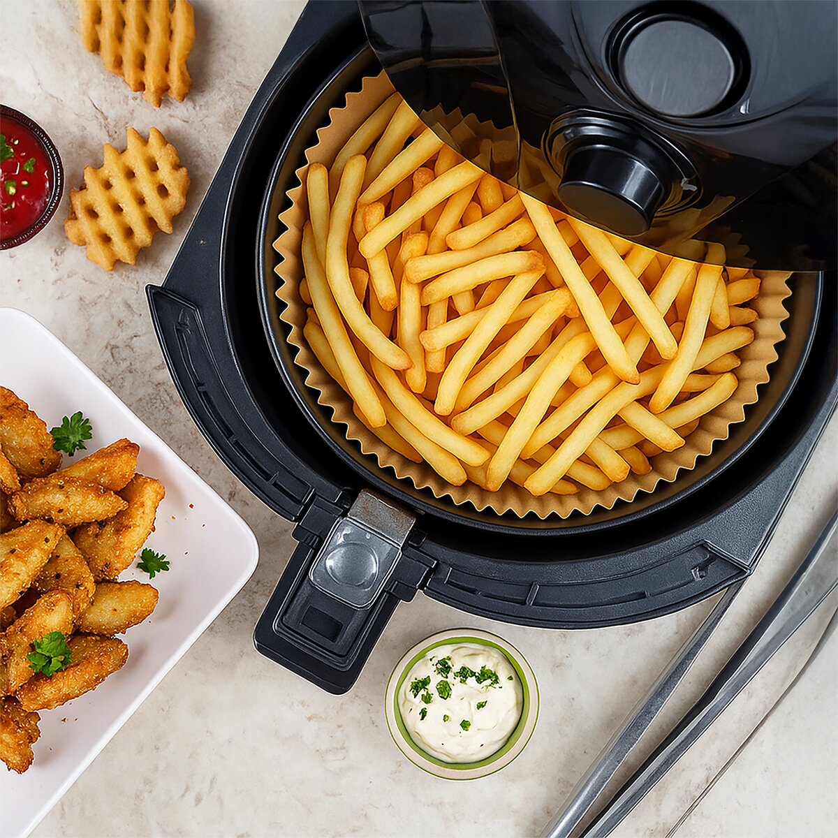 Kód produktu 120077Sada 100 kusů kulatých forem ze silikonového olejového papíru, které lze využít při přípravě pokrmů v horkovzdušné fritéze, ale i v klasické nebo mikrovlnné troubě.