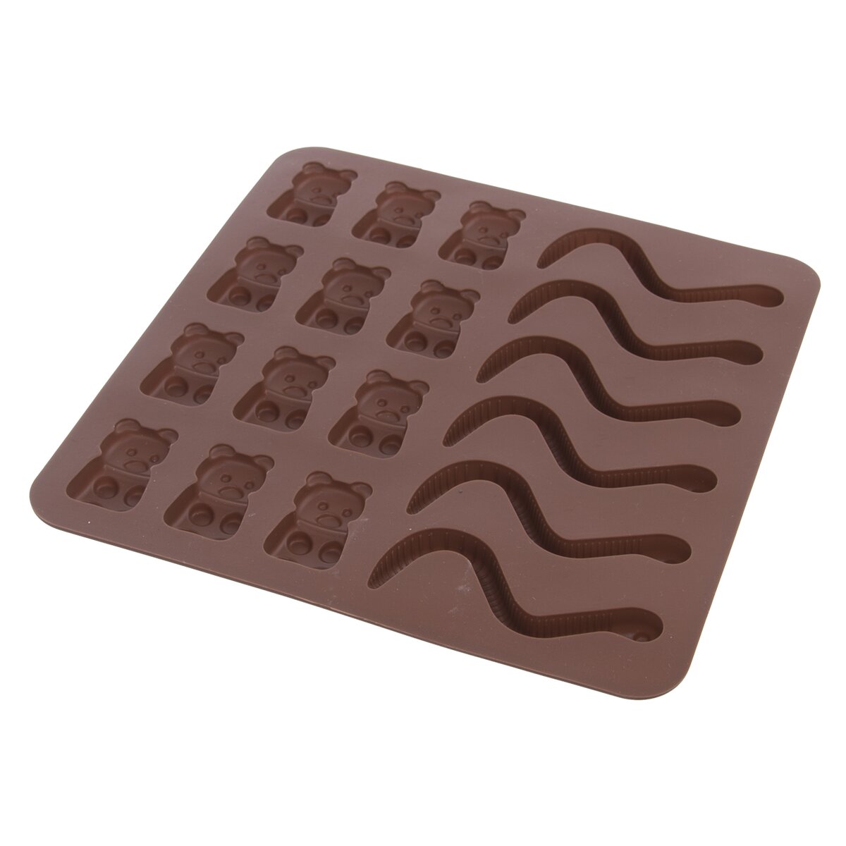 Kód produktu 151738Nepřilnavá hnědá silikonová forma pomůže s domácí výrobou želatinových bonbónů, oblíbených gumových medvídků a žížalek nebo čokoládových pralinek.