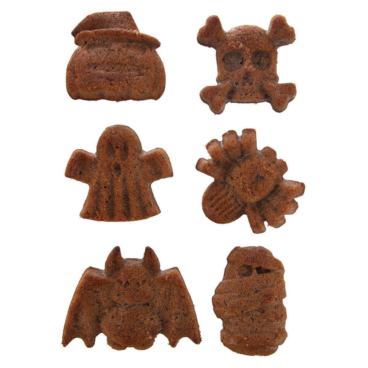 Forma obsahuje 6 různých halloweenských motivů – lebku, dýni, ducha, pavouka a další.