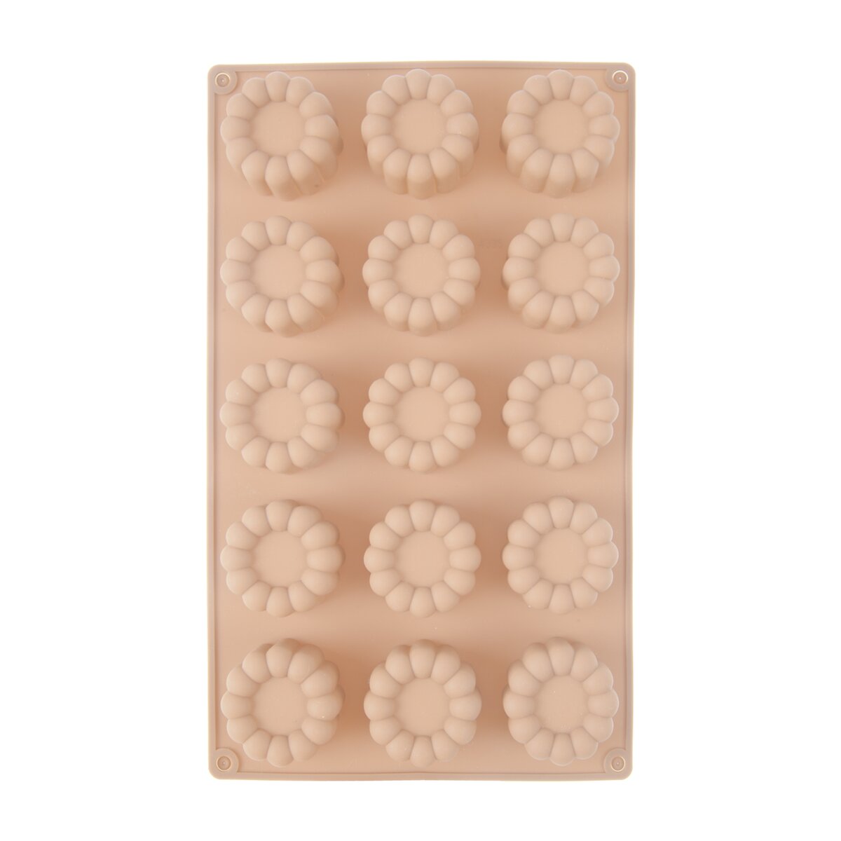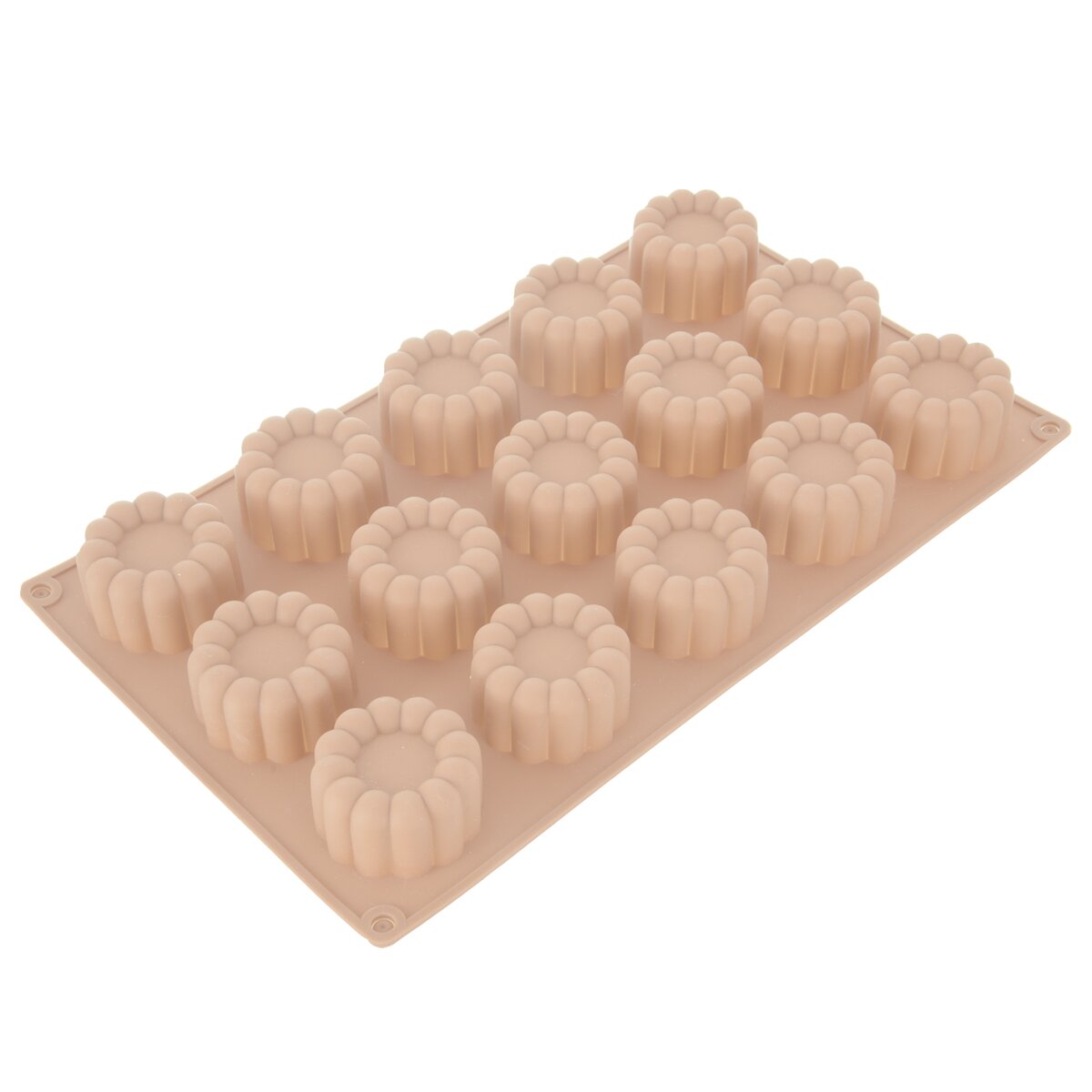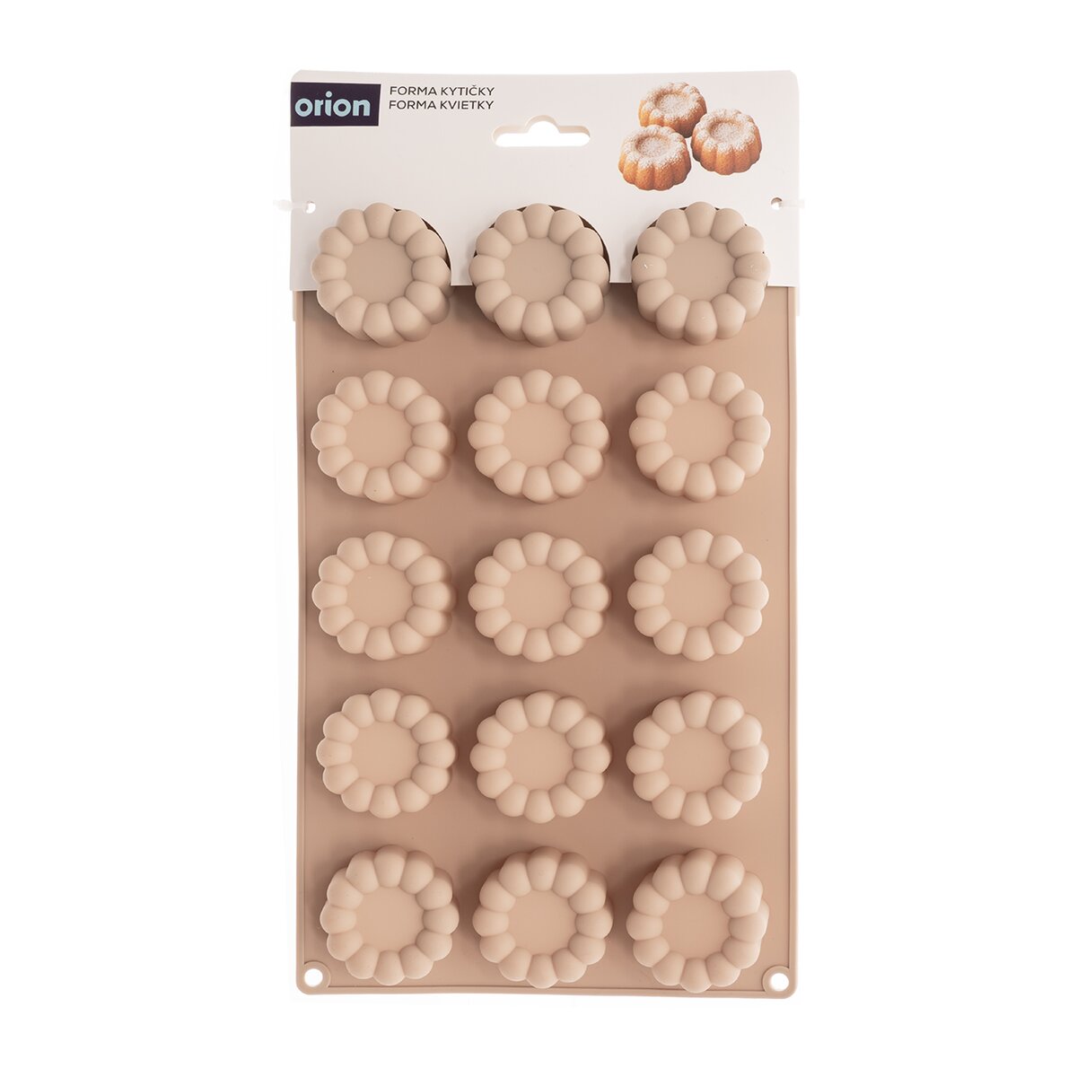 Kód produktu 154452Nepřilnavá béžová silikonová forma pro rychlé a stejnoměrné pečení 15 ks menších muffinů, i k přípravě smetanových dezertů nebo čokolády ve tvaru kytičky. Jedna formička má průměr 4 cm.
