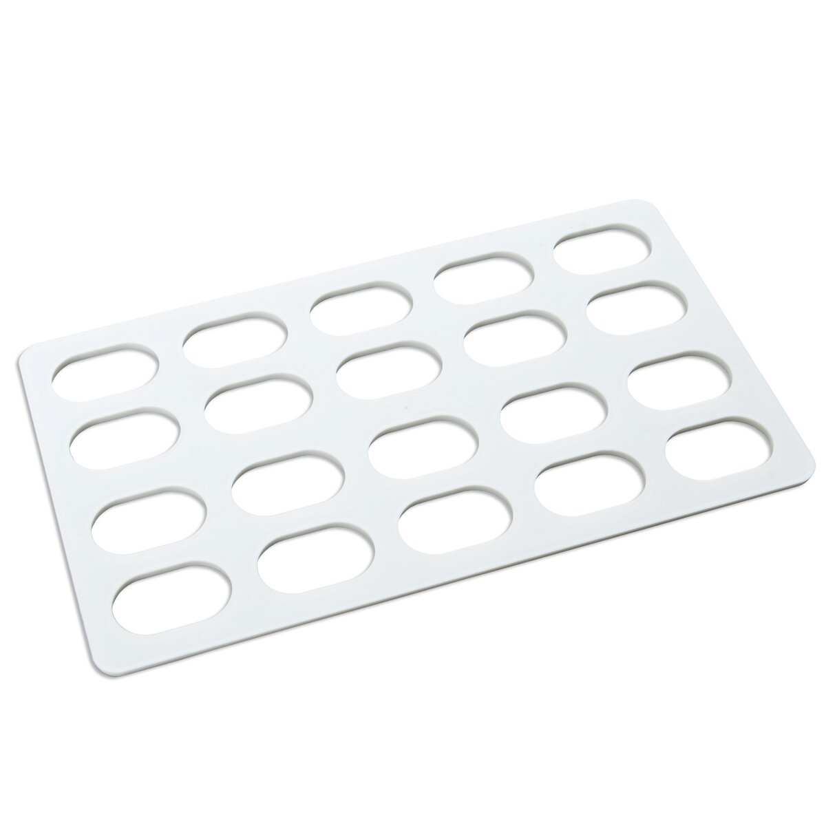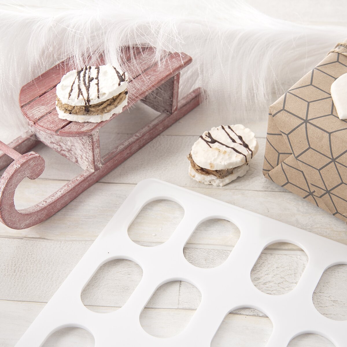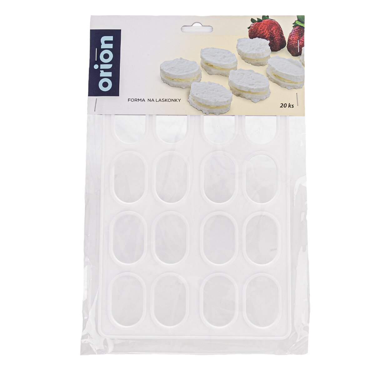 Kód produktu 124921Šikovná forma na přípravu 20 ks oválných sněhových laskonek naráz, velikost jedné laskonky 4,5x3 cm. Možnost mýt v myčce.