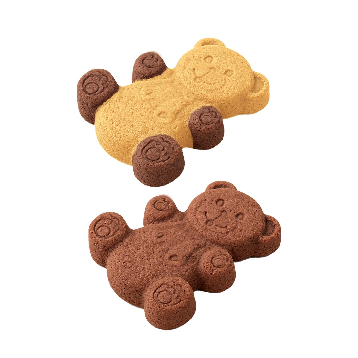 V nepřilnavé silikonové formě na pečení můžete upéct z piškotového nebo litého těsta medvídky, plněné marmeládou či čokoládou. A svačinka do školy nebo na výlet je hotová.