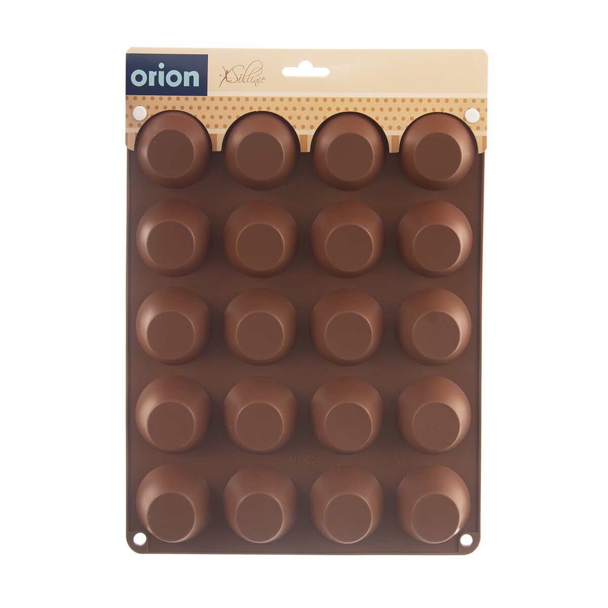 Kód produktu 151763Nepřilnavá silikonová forma v hnědé barvě pro rychlé a stejnoměrné pečení 20 ks malých muffinů.