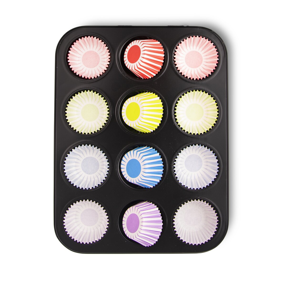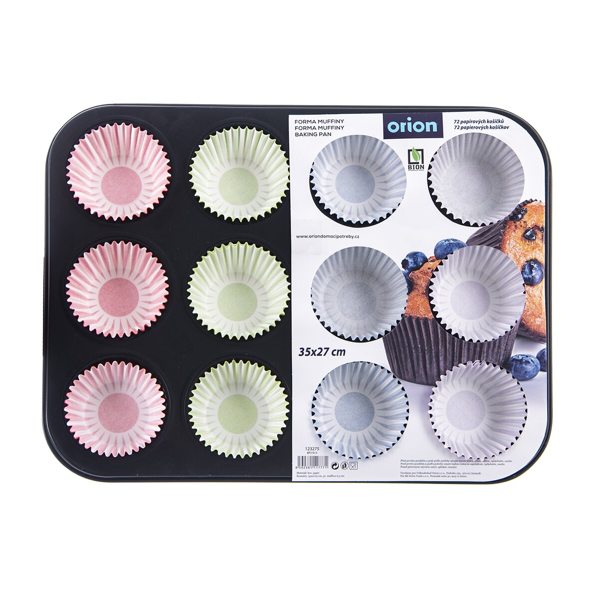 Kód produktu 123275Nepřilnavá kovová forma na 12 muffiny včetně 72 ks papírových košíčků pro snadné a rychlé pečení vláčných muffinů i nadýchaných cupcaků.