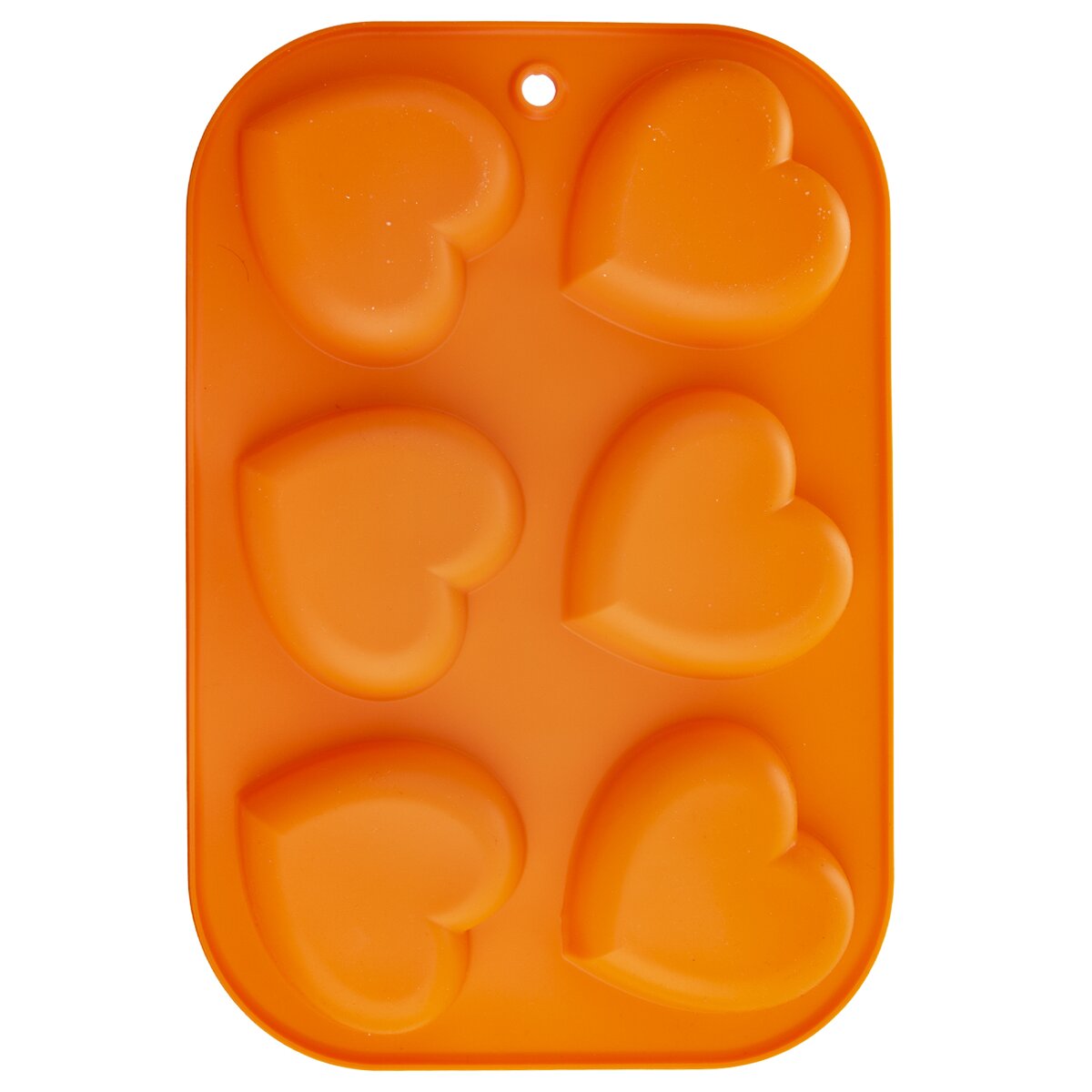 Díky kvalitní a praktické oranžové silikonové formě ve tvaru srdíček bude pečení muffinů snadnější. Třeba 6 ks naráz. Formy jsou vyrobené z odolného, žáruvzdorného silikonu, určeného pro styk s potravinami.