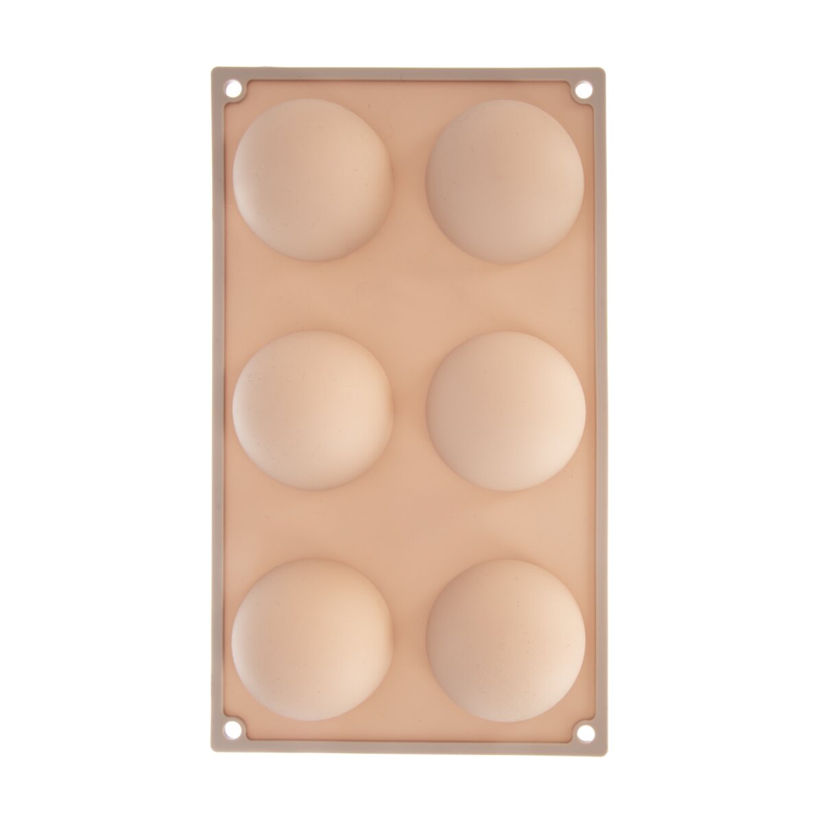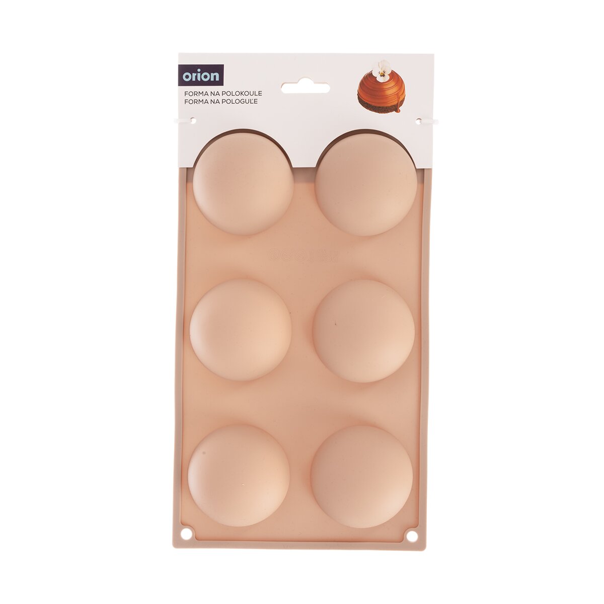 Kód produktu 154428Nepřilnavá béžová silikonová forma je určena pro rychlé a stejnoměrné pečení 6 ks dortíků, ale i k přípravě smetanových dezertů nebo čokoládového fondantu. Jedna polokoule má průměr 6,5 cm.