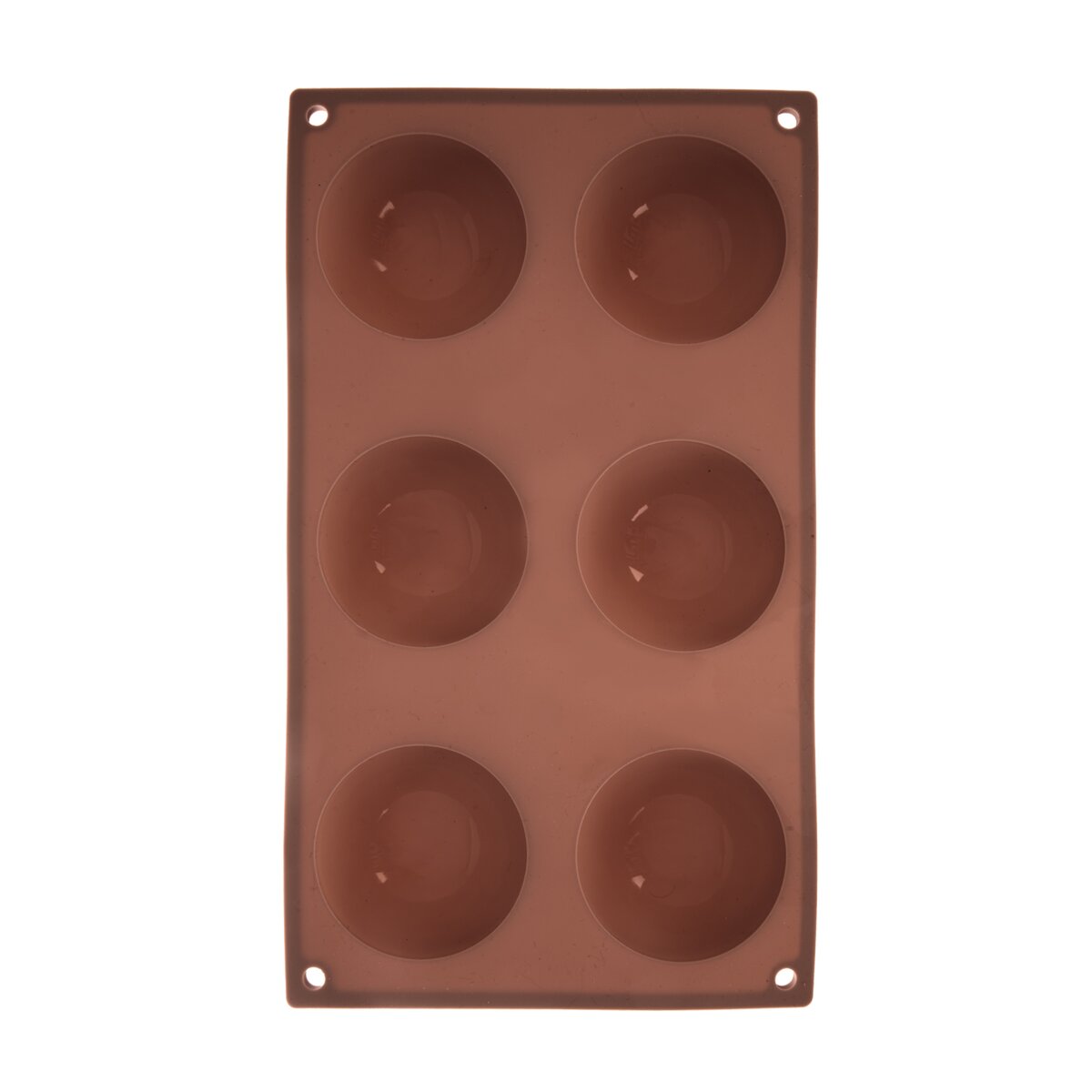 Kód produktu 154441Nepřilnavá hnědá silikonová forma je určena pro rychlé a stejnoměrné pečení 6 ks dortíků, ale i k přípravě smetanových dezertů nebo čokoládového fondantu. Jedna polokoule má průměr 6,5 cm.